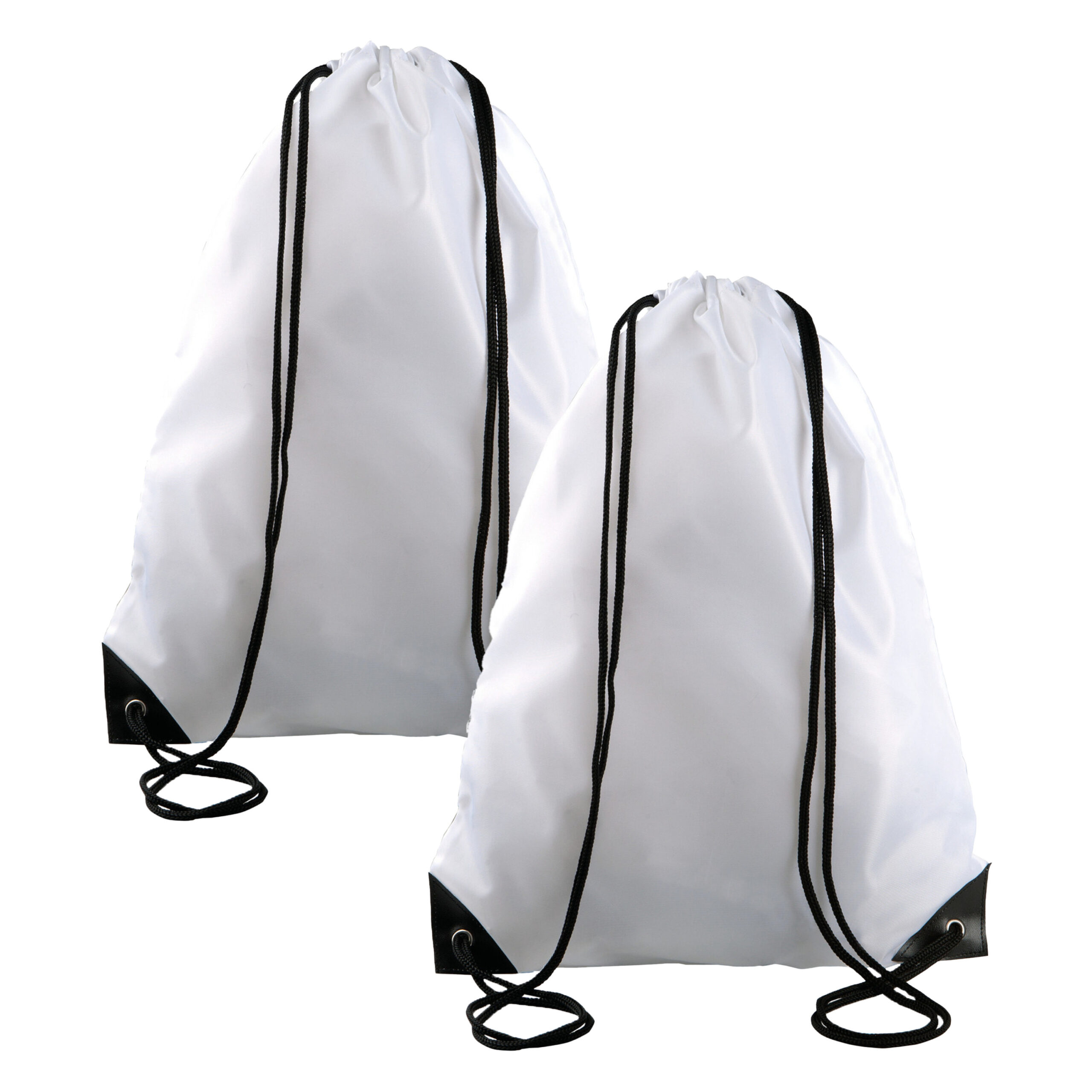 Handige witte gymtas met rijgkoord, ideaal voor sport, zwemmen, festivals of carnaval. De tas is gemaakt van polyester, heeft verstevigde hoeken en is waterbestendig, zodat je spullen beter beschermd blijven. Geschikt voor zowel kinderen als volwassenen.