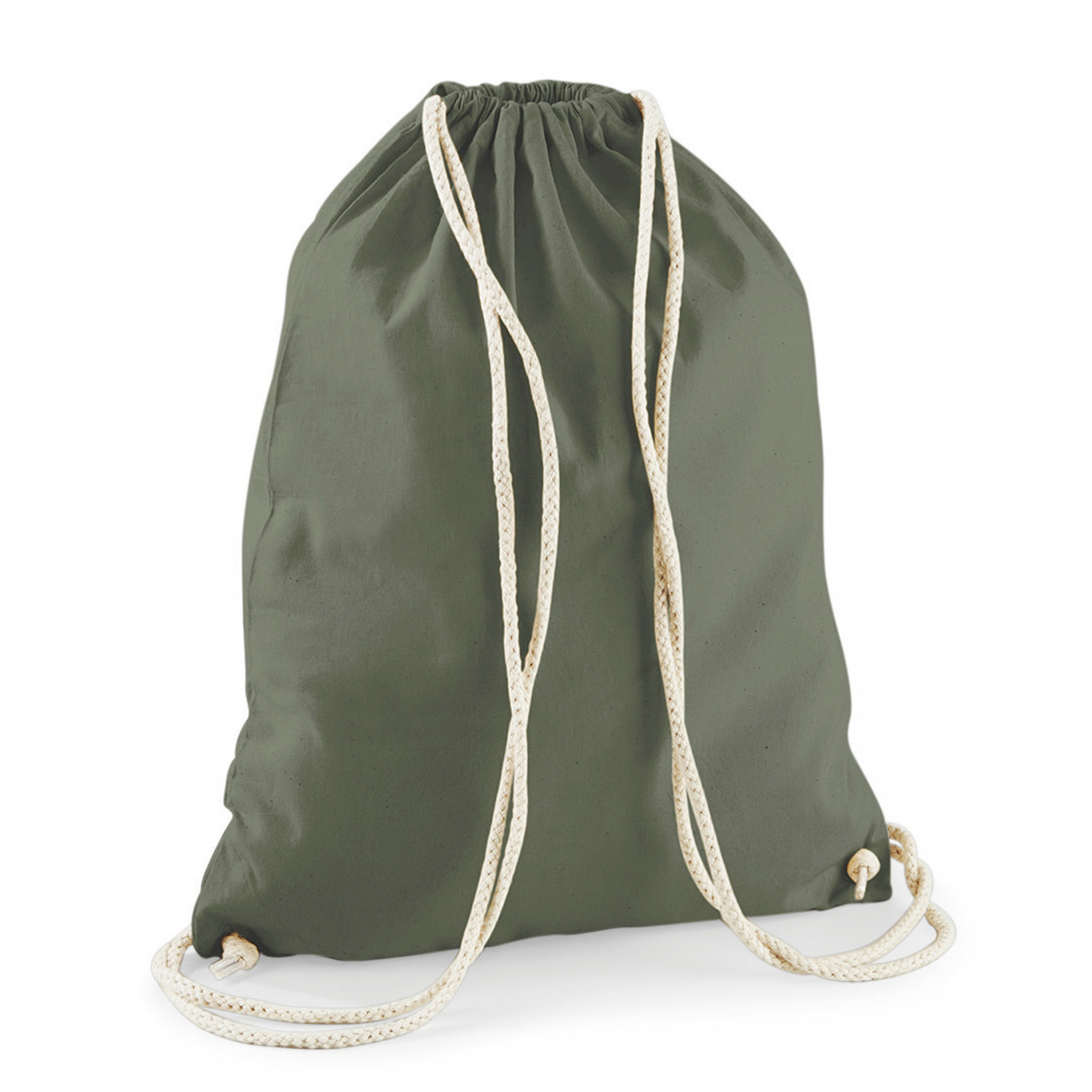 2 stuks sport of zwemmen gymtas/rugzak in de kleur olijfgroen, met rijgkoord, gemaakt van 100% katoen. De inhoud van de gymtas is ongeveer 12 liter. De gymtasjes zijn in zeer veel kleuren leverbaar. Afmeting formaat van zwem/opberg/gymtassen is ongeveer 46 x 37 cm. Sluiting met een rijgkoordje. Het goede natuurlijk alternatief voor een polyester tasje.