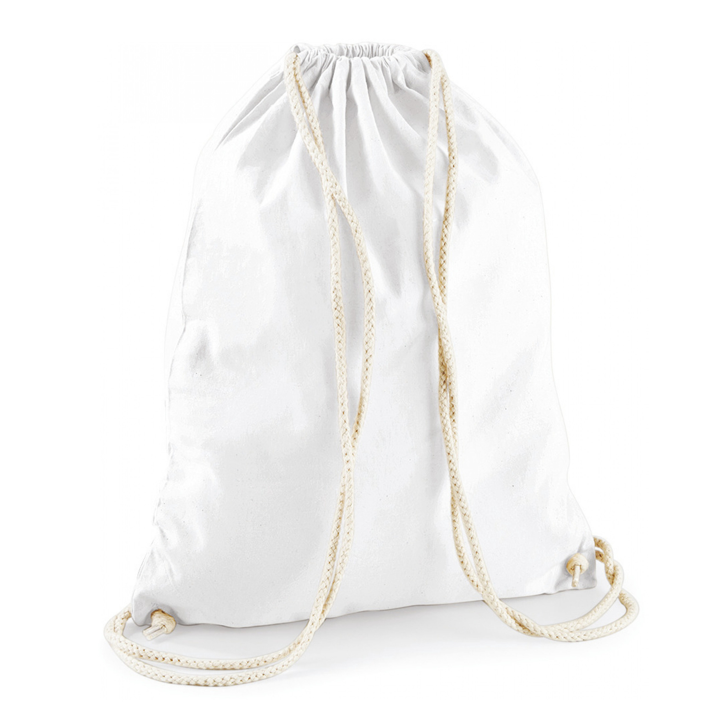 2 stuks sport of zwemmen gymtas/rugzak in de kleur wit, met rijgkoord, gemaakt van 100% katoen. De inhoud van de gymtas is ongeveer 12 liter. De gymtasjes zijn in zeer veel kleuren leverbaar. Afmeting formaat van zwem/opberg/gymtassen is ongeveer 46 x 37 cm. Sluiting met een rijgkoordje. Het goede natuurlijk alternatief voor een polyester tasje.