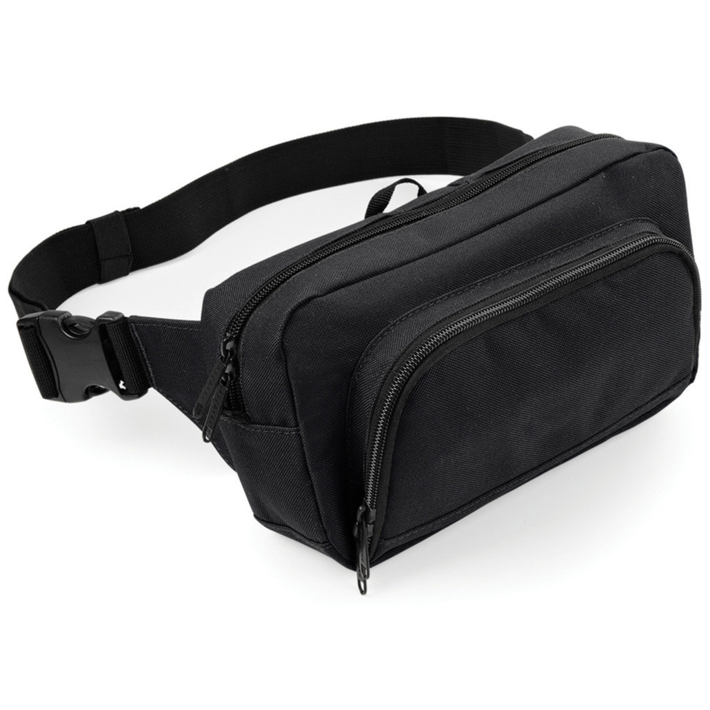 Grote heuptas van 2,5 liter inhoud in de kleur zwart. Verstelbare singel bandriem. Hoofdtelefooningang. Achtervak met rits. Mesh binnenvak. Sleutelhaak. Afmetingen: 24 x 13.5 x 9 cm. Handig voor reizigers en wandelaars of gewoon voor je vrije tijd.