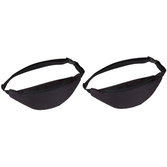 2x heuptasje/buideltasje in de kleur zwart. Dit heuptasje met ritssluiting heeft een verstelbare band en een extra insteek vak in het hoofdvak. Afmeting: ongeveer 35 x 15 x 5,5 cm. Inhoud: 2,9 liter. Materiaal: 100% polyester. Outdoor accessoires voor o.a. wandelen heuptassen/buideltassen/fanny packs. Geschikt voor volwassenen en oudere kinderen.