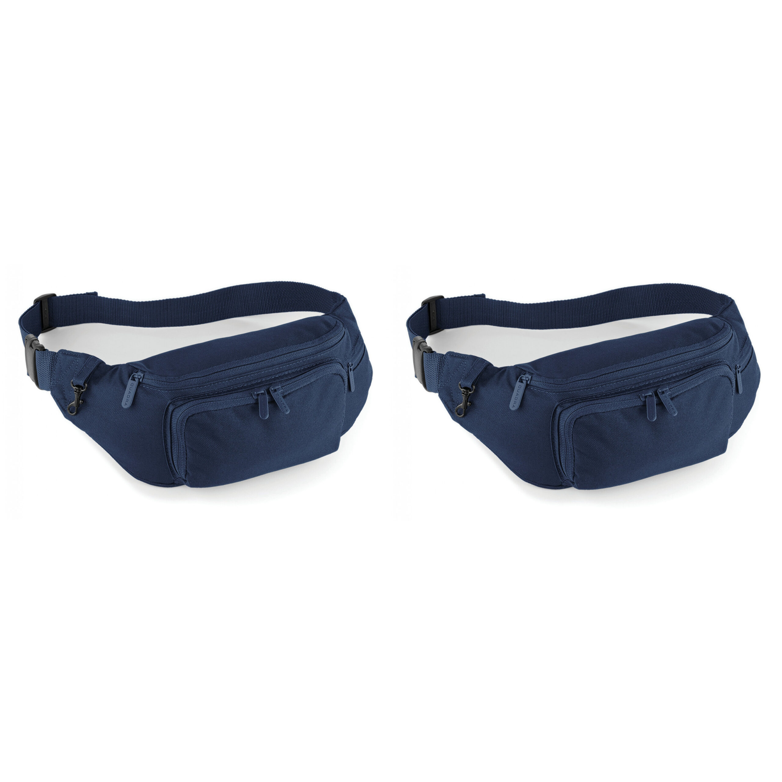 2 stuks donkerblauw heuptasje/buideltasje van 37 x 15 cm. Comfortabel en perfect voor het vervoer van onmisbare spullen. De heuptas is voorzien van een verstelbare heupband, een sluithaak voor sleutels en verschillende zakken met ristsluiting. Het formaat is ca. 37 x 15 x 10 cm, inhoud: 2 liter. Materiaal: 187 grams kwaliteit polyester 600D.