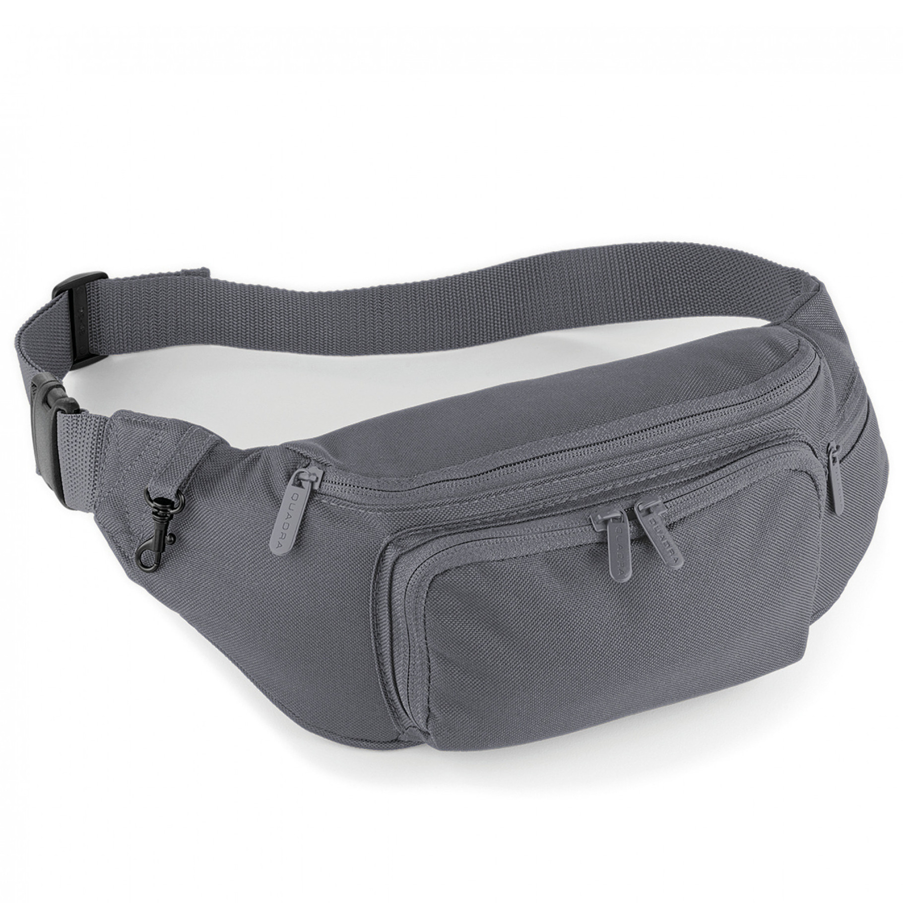 Grijs heuptasje/buideltasje van 37 x 15 cm. Comfortabel en perfect voor het vervoer van onmisbare spullen. De heuptas is voorzien van een verstelbare heupband, een sluithaak voor sleutels en verschillende zakken met ristsluiting. Het formaat is ca. 37 x 15 x 10 cm, inhoud: 2 liter. Materiaal: 187 grams kwaliteit polyester 600D.