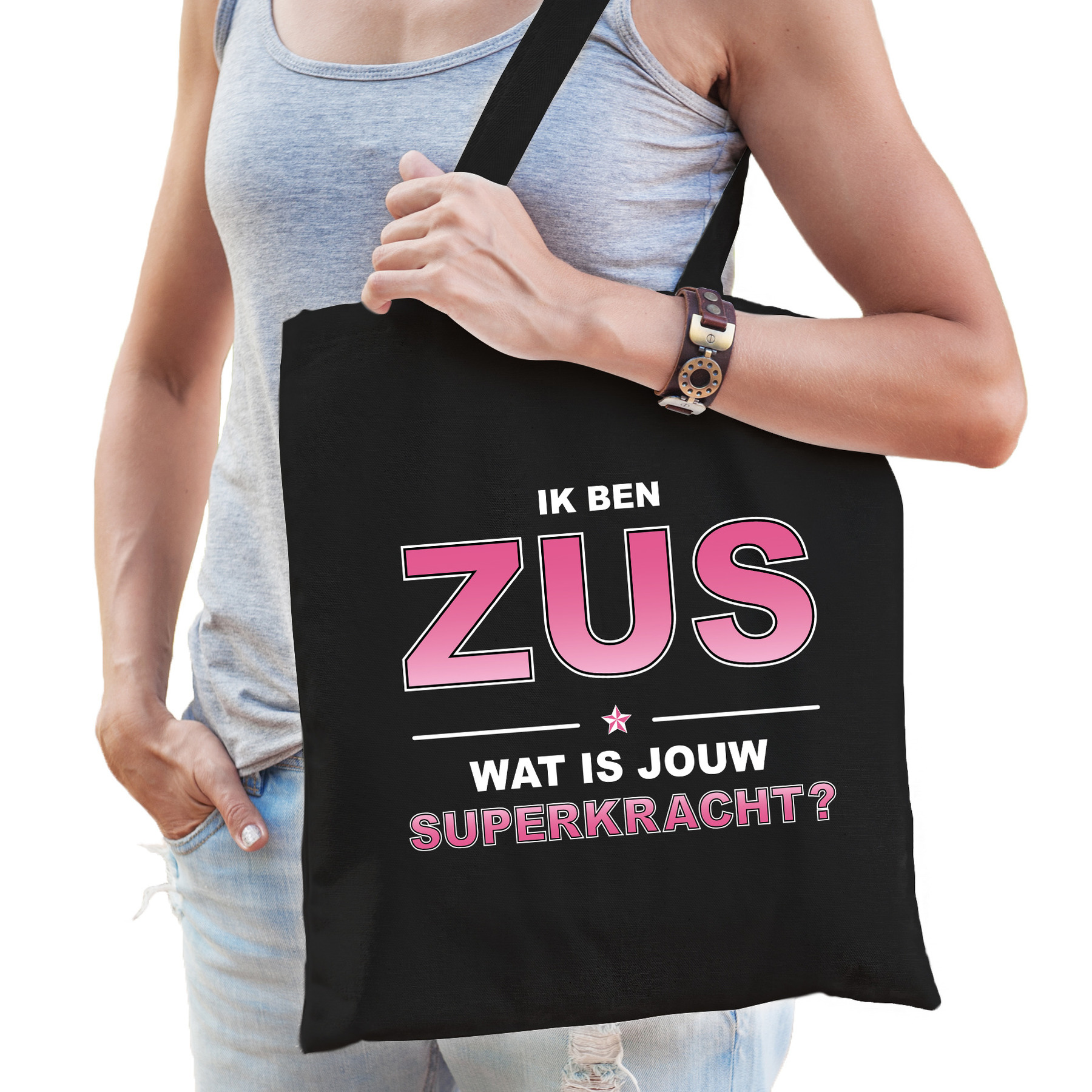 Ik ben zus wat is jouw superkracht tasje zwart voor dames – cadeau tas zus