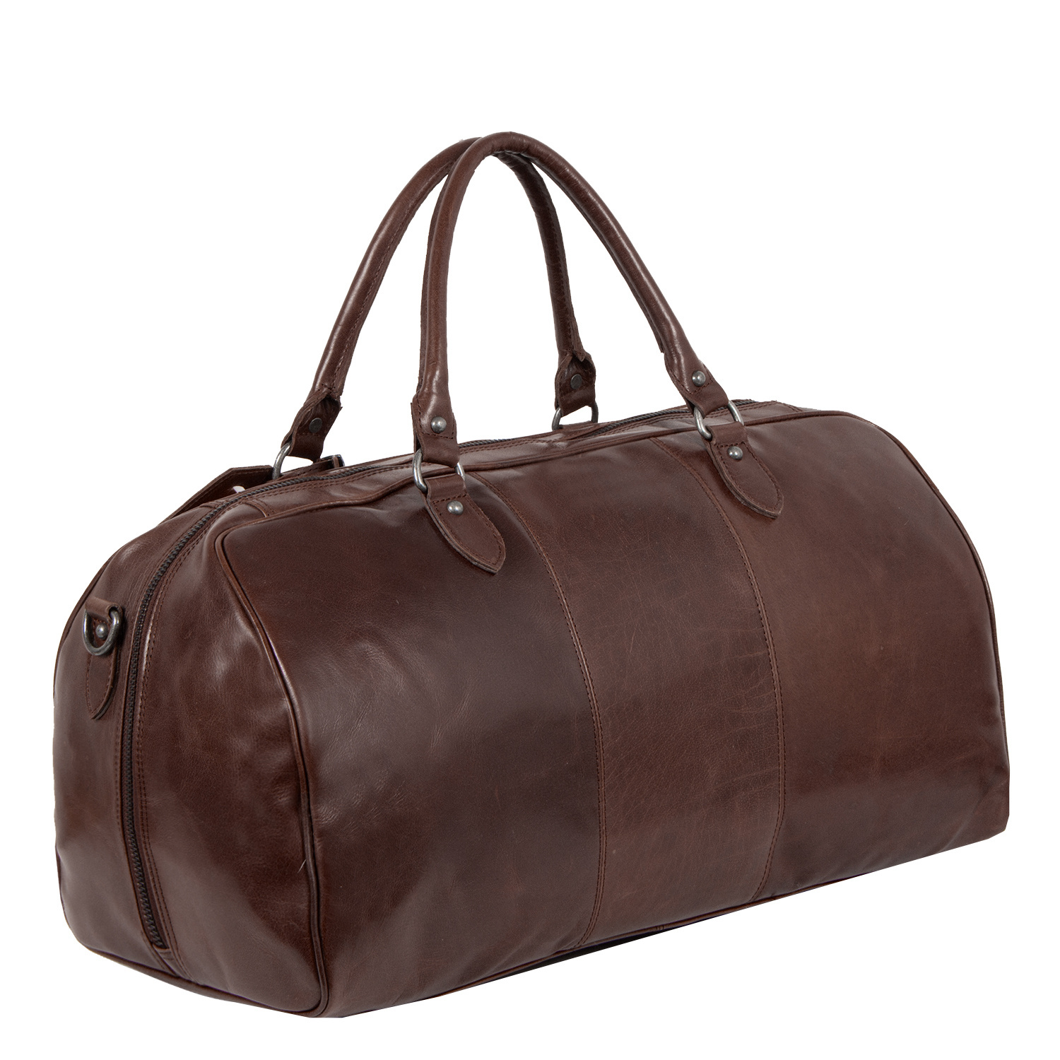 Stijlvol op reis of weekendje weg? Comfort & Classy komen samen in deze luxe Weekender met de vorm van een Duffel bag, maar dan van duurzaam leer. Handig op te bergen of te stapelen in bijvoorbeeld de kofferbak. Een ruime tas met een U-vormige rits waardoor de tas ver te openen is en je eenvoudig kunt in-en uitpakken. Het ruime hoofdcompartiment is bekleed met een gestreepte voering en heeft een ruim ritsvak aan de binnenzijde. Deze weekendtas/reistas heeft stevige leren handgrepen waardoor de tas aan de hand maar ook over de schouder gedragen kan worden. De bijgeleverde afneembare en verstelbare schouderband zorgt ervoor dat de tas op gewenste lengte crossbody gedragen kan worden. Er is zelfs aandacht besteed aan de beschermende nopjes aan de onderkant op de verstevigde bodem. Een leren bagagelabel zorgt voor een mooie finish in touch van deze stoere, toch chique tas.