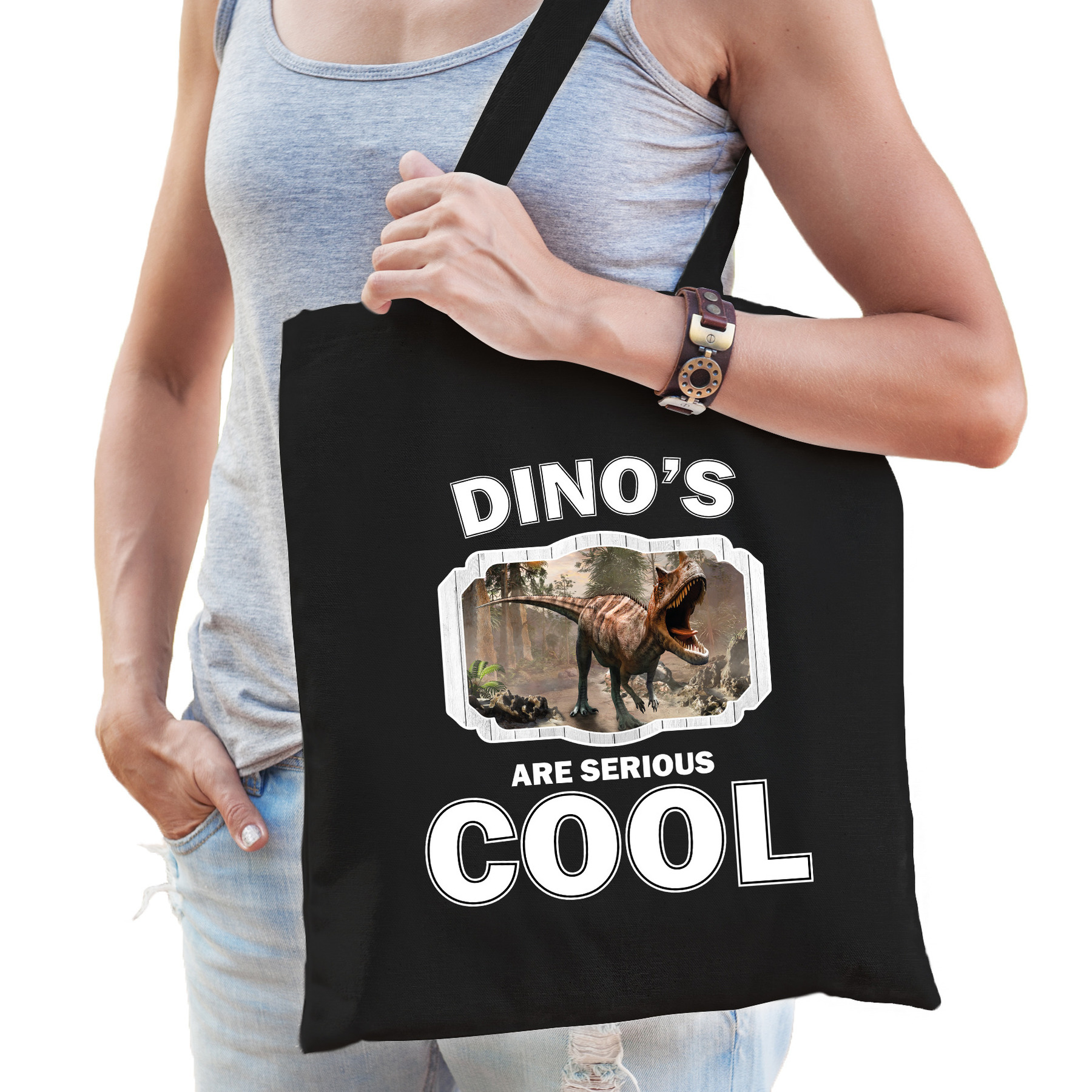 Dieren katoenen tasje carnotaurus dinosaurus zwart voor volwassenen en kinderen. Op deze tas staat een dinosaurussen afbeelding en de tekst: dinosaurs are serious cool. Een musthave voor een echte dieren/ dinosaurussen liefhebber of iemand die alles van dinosaurussen spaart. Erg leuk om cadeau te doen aan een echte dinosaurussen fan of gewoon om zelf te gebruiken!