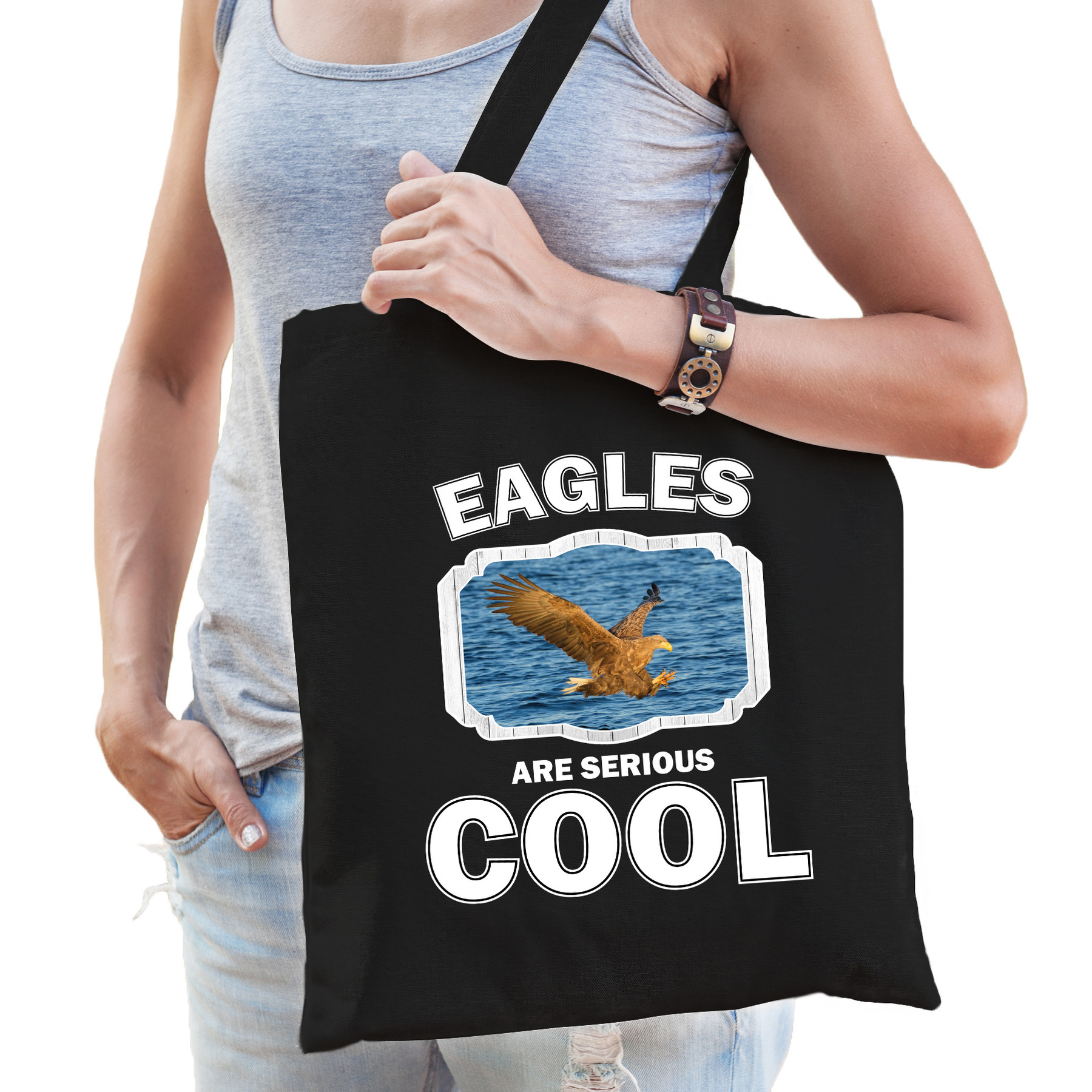 Dieren katoenen tasje zeearend zwart voor volwassenen en kinderen. Op deze tas staat een arenden afbeelding en de tekst: eagles are serious cool. Een musthave voor een echte dieren/ arenden liefhebber of iemand die alles van arenden spaart. Erg leuk om cadeau te doen aan een echte arenden fan of gewoon om zelf te gebruiken!