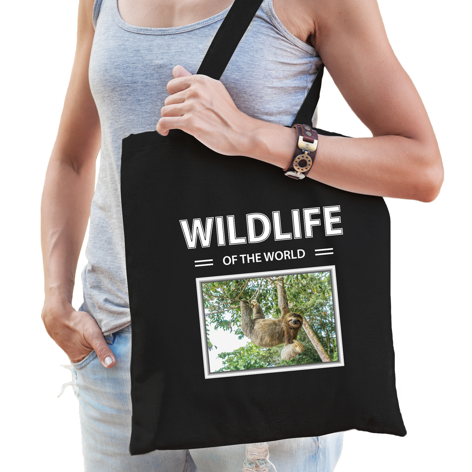 Luiaard tasje zwart voor volwassenen en kinderen. Op deze tas staat een Luiaard afbeelding en de tekst: wildlife of the world. Een musthave voor een echte dieren/ Luiaard liefhebber of iemand die alles van Luiaarden spaart. Erg leuk om cadeau te doen aan een echte Luiaard fan of gewoon om zelf te gebruiken!