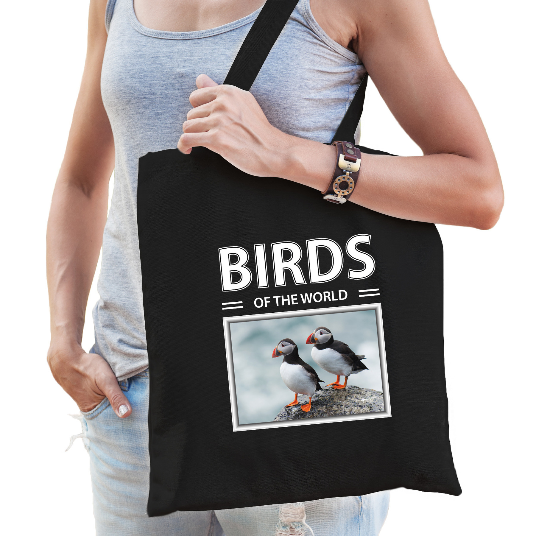 Papegaaiduiker vogel tasje zwart voor volwassenen en kinderen. Op deze tas staat een Papegaaiduiker afbeelding en de tekst: birds of the world. Een musthave voor een echte dieren/ Papegaaiduiker liefhebber of iemand die alles van Papegaaiduikers spaart. Erg leuk om cadeau te doen aan een echte Papegaaiduiker fan of gewoon om zelf te gebruiken!