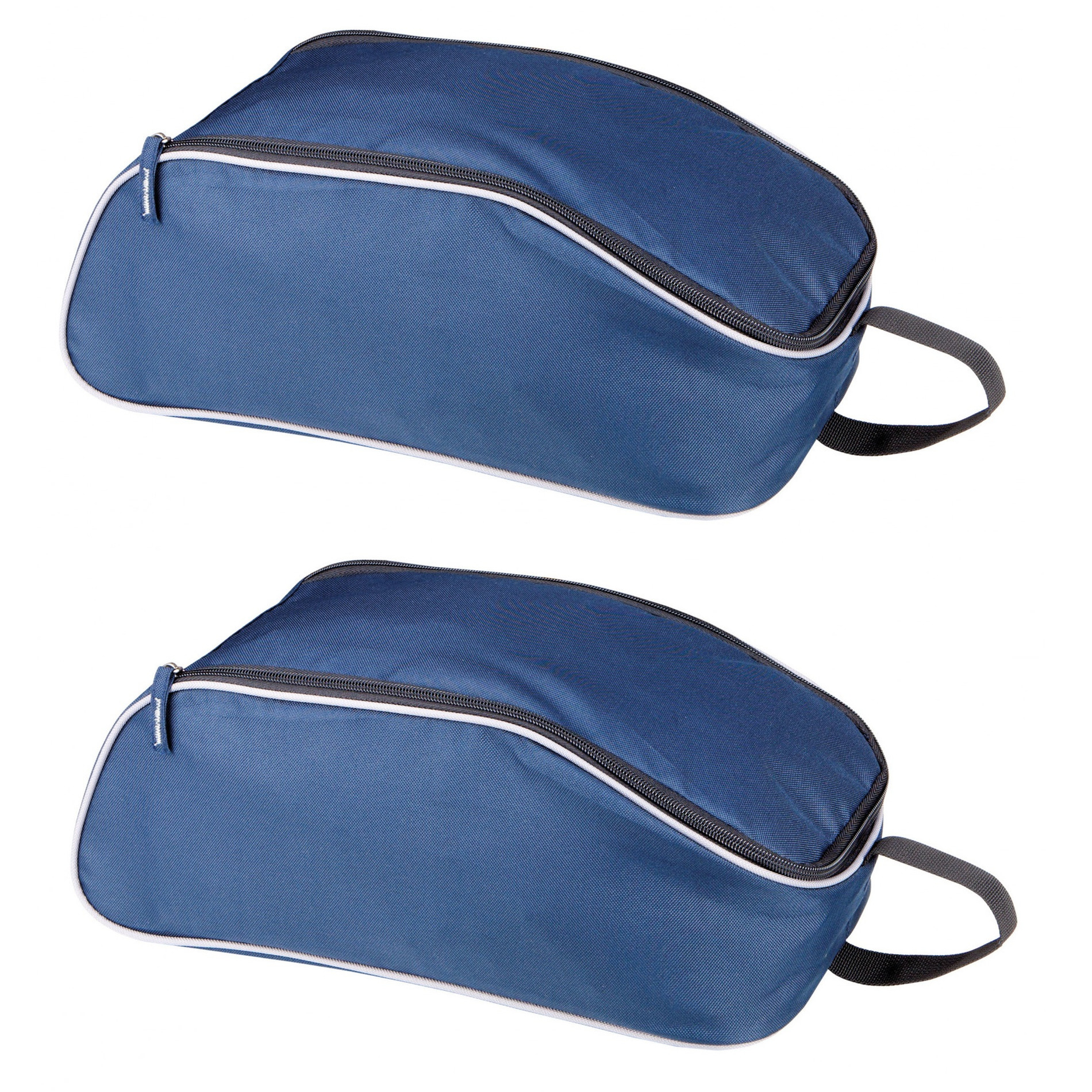 2 stuks schoenentas van 9 liter voor 1 paar schoenen. Voorzien van grote ritssluiting. Inhoud: 9 liter. Formaat: 38 x 20 x 14 cm. Materiaal: 100% polyester 600D. Reistas/opbergtas voor schoenen.