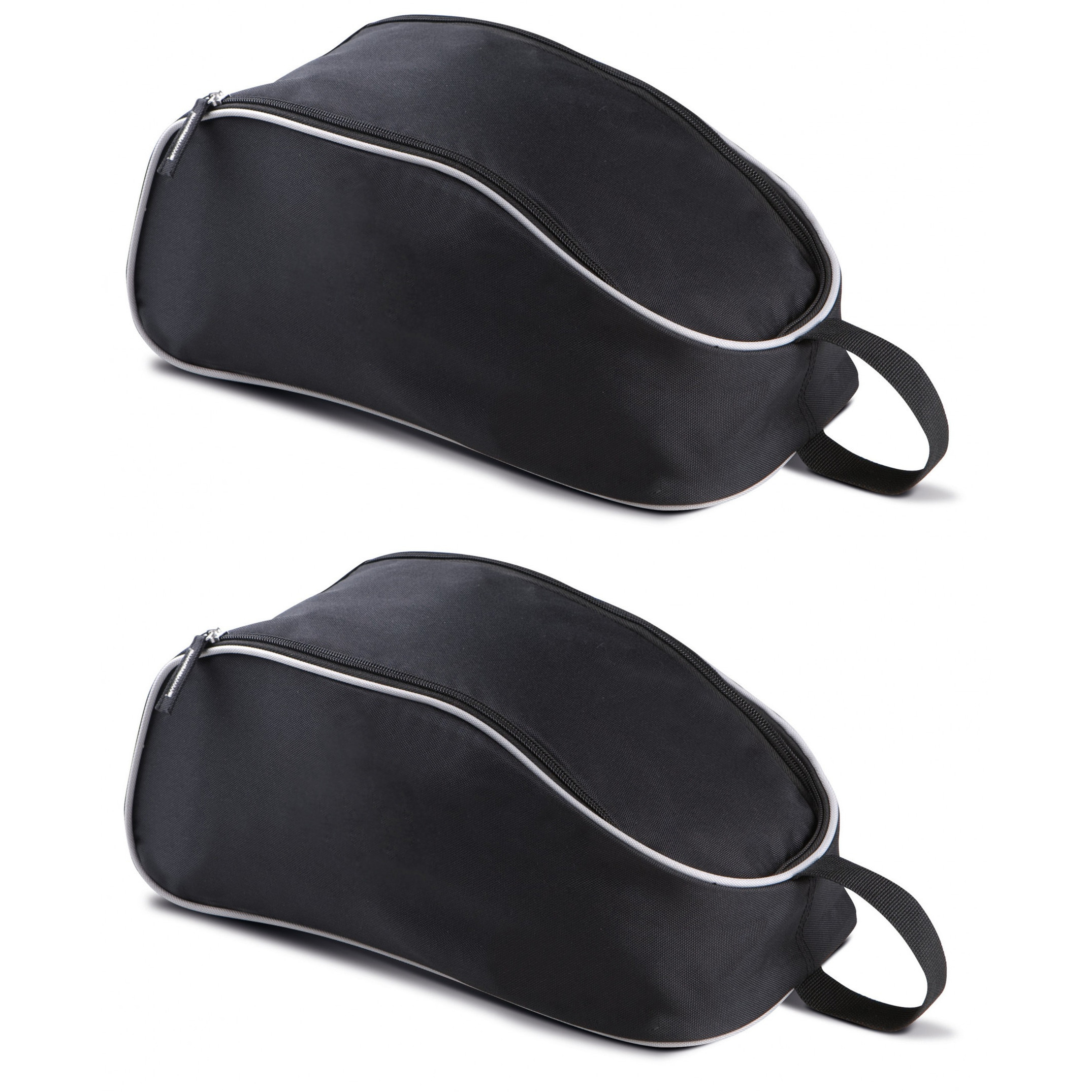 2 stuks schoenentas van 9 liter voor 1 paar schoenen in het zwart. Voorzien van grote ritssluiting. Inhoud: 9 liter. Formaat: 38 x 20 x 14 cm. Materiaal: 100% polyester 600D. Reistas/opbergtas voor schoenen.