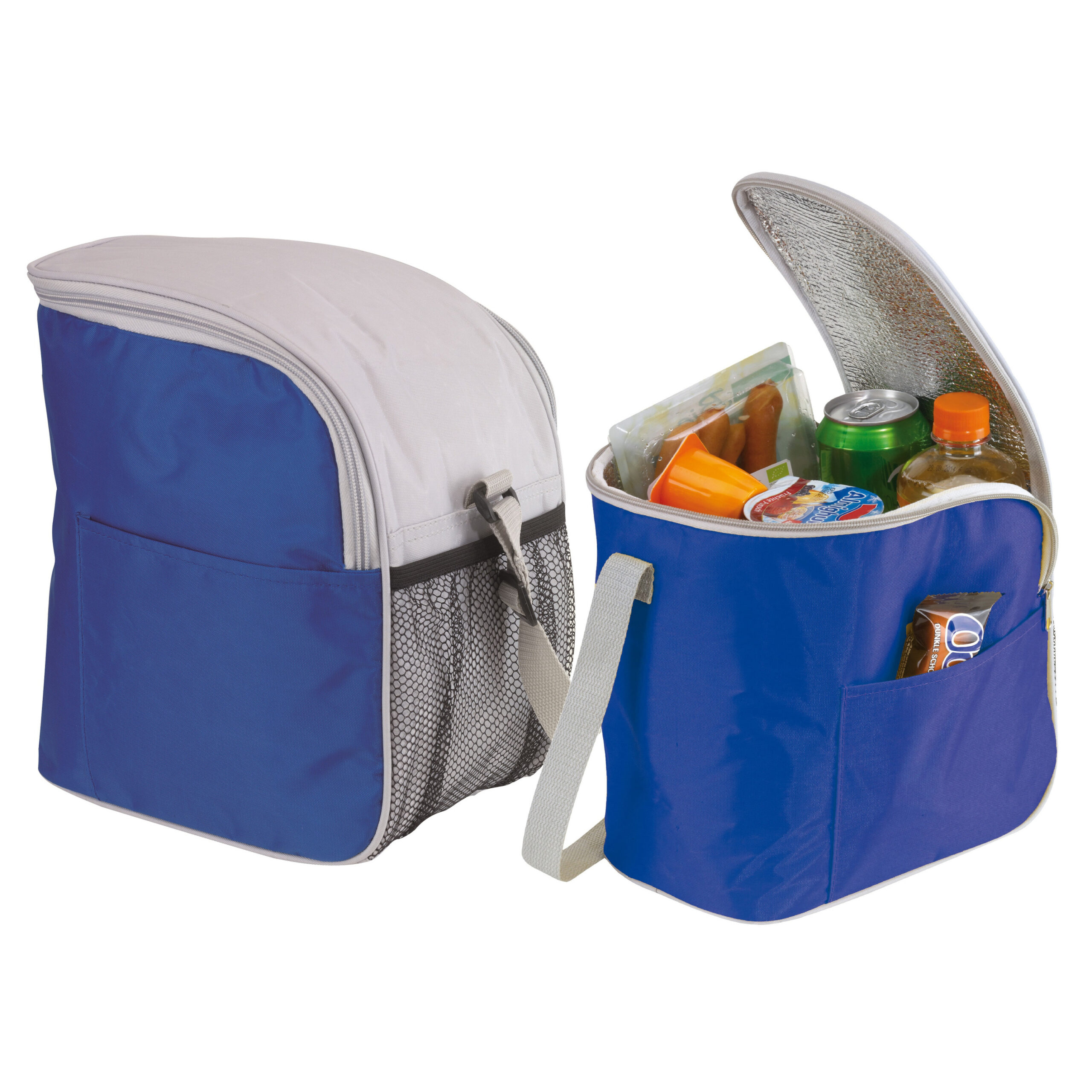 2x kleine koeltas of lunch tas model Glaciaal met afmetingen 23 x 16 x 26 cm. Deze handige koeltas heeft 1 compartiment en een klein voorvakje. Kleuren: blauw/grijs. Compact model. Materiaal: polyester. Met draaghengsel. Voedselveilig en makkelijk schoon te maken. Inhoud: 9 liter. Er kunnen makkelijk blikjes, flesjes en voedsel/fruit in.