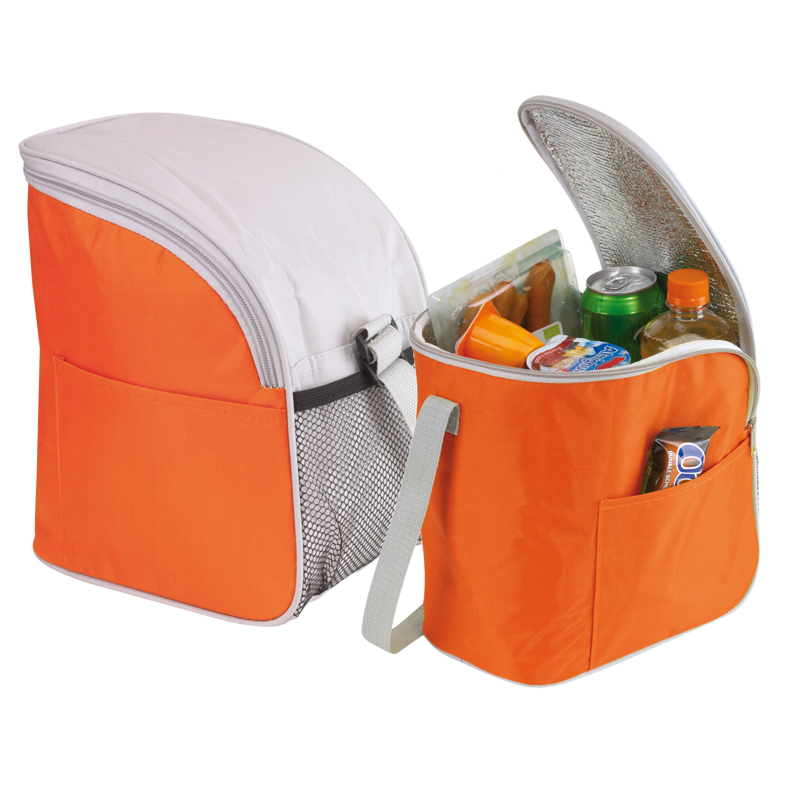 2x kleine koeltas of lunch tas model Glaciaal met afmetingen 23 x 16 x 26 cm. Deze handige koeltas heeft 1 compartiment en een klein voorvakje. Kleuren: oranje/grijs. Compact model. Materiaal: polyester. Met draaghengsel. Voedselveilig en makkelijk schoon te maken. Inhoud: 9 liter. Er kunnen makkelijk blikjes, flesjes en voedsel/fruit in.