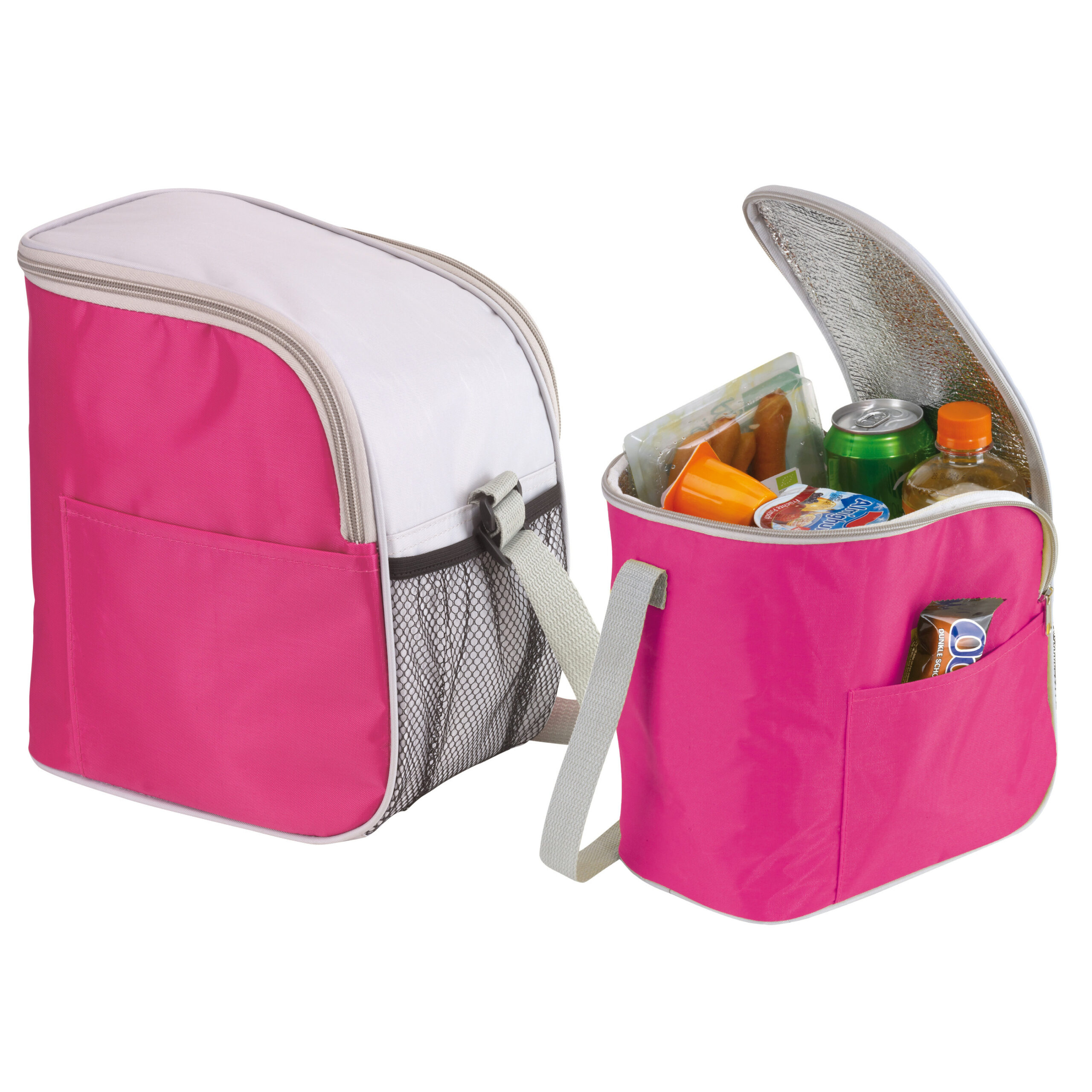 2x kleine koeltas of lunch tas model Glaciaal met afmetingen 23 x 16 x 26 cm. Deze handige koeltas heeft 1 compartiment en een klein voorvakje. Kleuren: roze/grijs. Compact model. Materiaal: polyester. Met draaghengsel. Voedselveilig en makkelijk schoon te maken. Inhoud: 9 liter. Er kunnen makkelijk blikjes, flesjes en voedsel/fruit in.