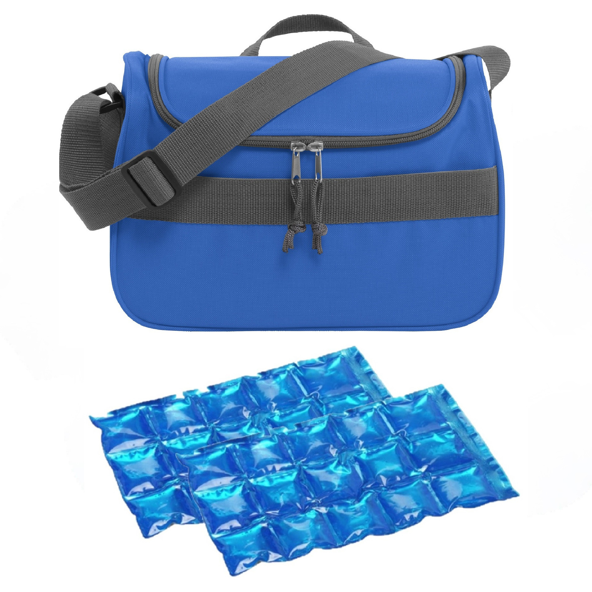 Kleine koeltas voor lunch blauw/wit met 2 stuks flexibele koelelementen 8 liter