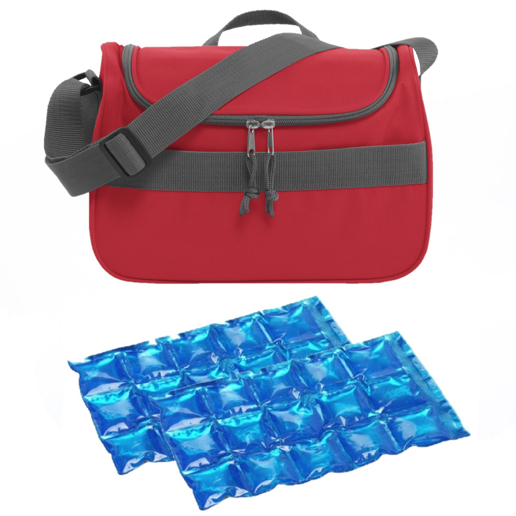 Kleine koeltas voor lunch rood met 2 stuks flexibele koelelementen. De flexibele koelelementen zijn herbruikbaar. Afmeting koeltas: ca. 30 x 15 x 22 cm. Inhoud koeltas: ca. 10 liter. Materiaal koeltas: polyester. , Dit artikel bestaat uit:, 2x 1x Stuks herbruikbare flexibele koelelementen icepack 15 x 25 cm, 1x Kleine koeltas voor lunch en drankjes – rood – 30 x 15 x 22 cm – 10 liter – Koeltassen