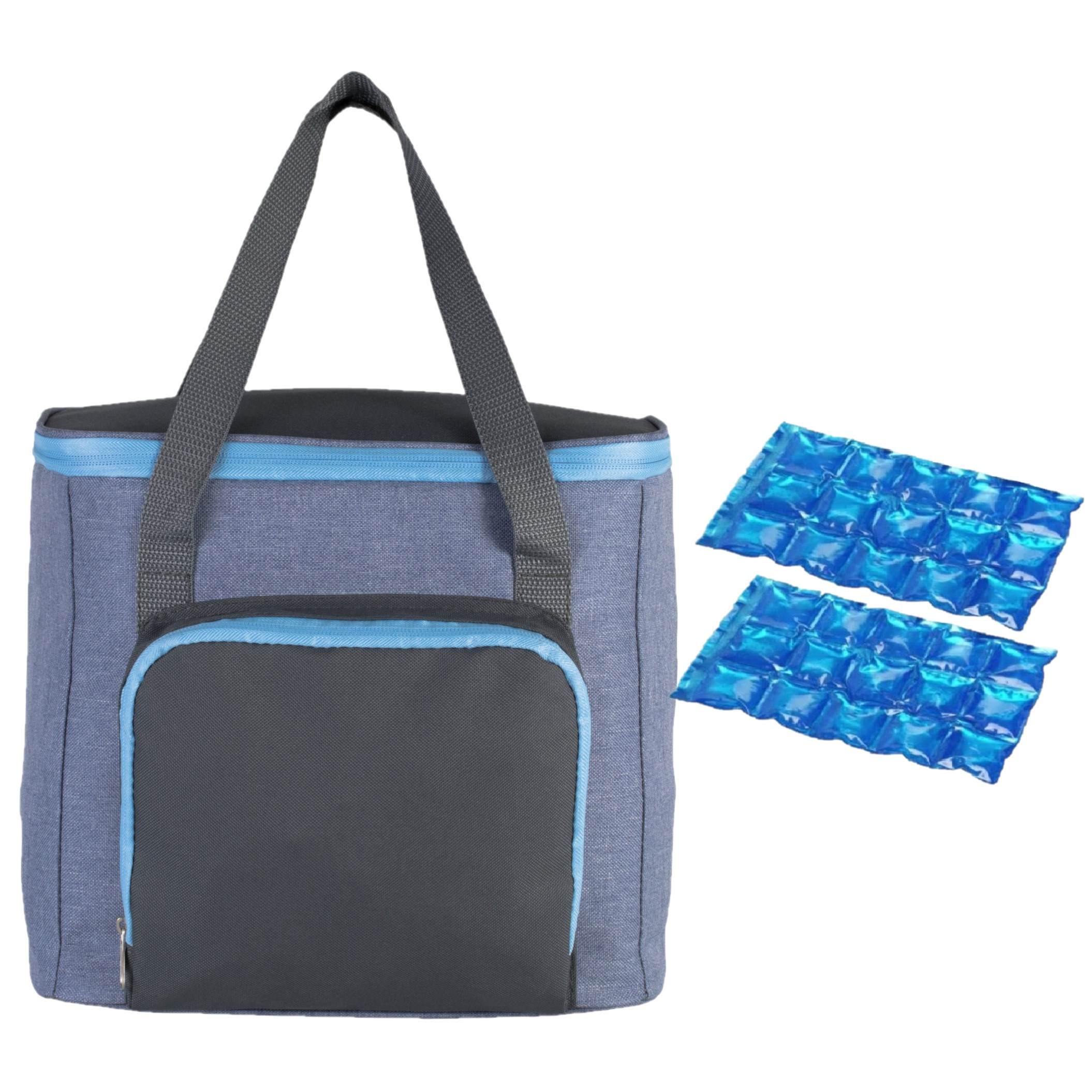 Koeltas draagtas lichtblauw/grijs met 2 stuks flexibele koelelementen. De flexibele koelelementen zijn herbruikbaar. Afmeting koeltas: ca. 28 x 17 x 26 cm. Inhoud koeltas: ca 12 liter. Materiaal koeltas: polyester. , Dit artikel bestaat uit:, 2x 1x Stuks herbruikbare flexibele koelelementen icepack 15 x 25 cm, 1x Koeltas draagtas lichtblauw/grijs 28 x 17 x 26 cm 12 liter