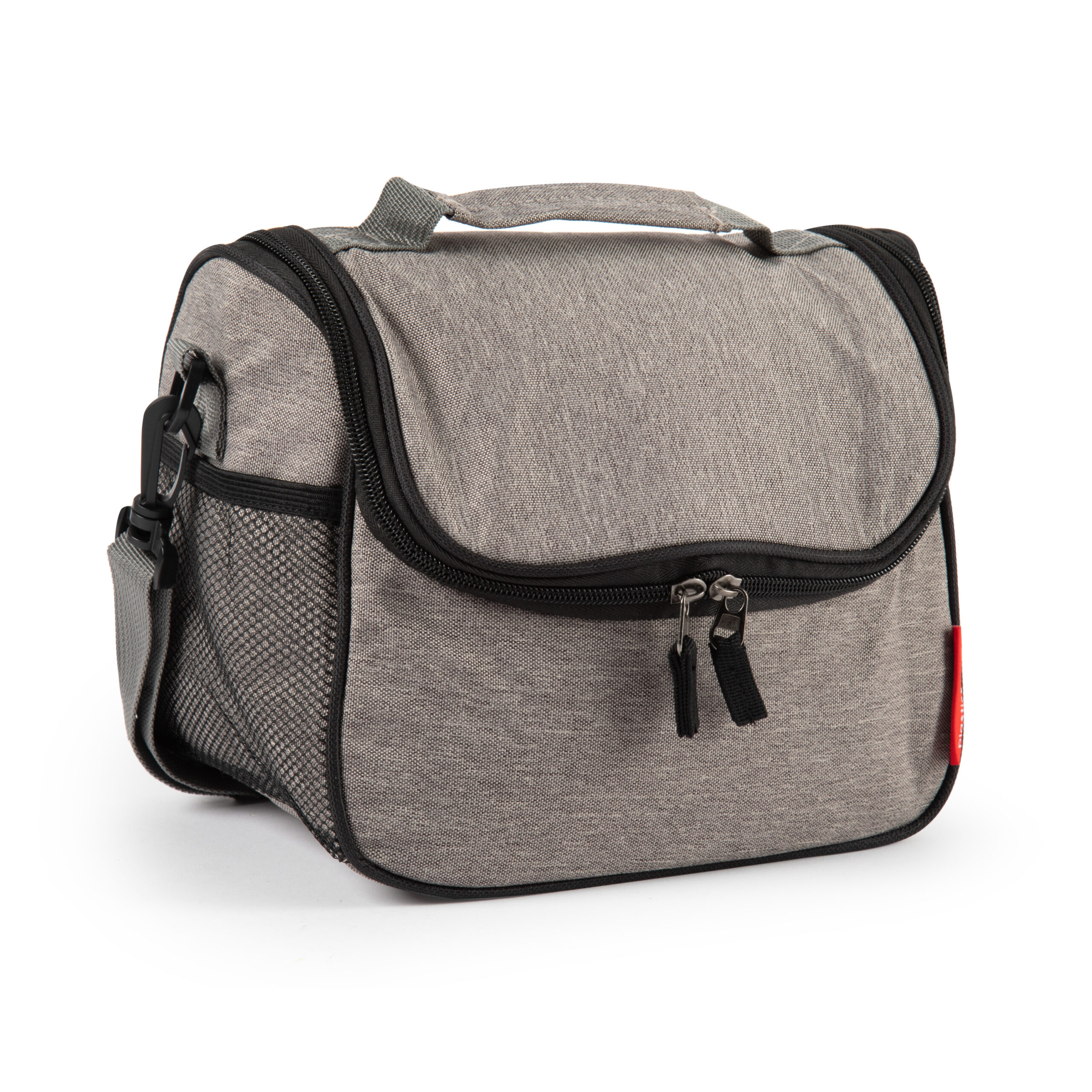 Koeltas/lunchtas Callela in de kleur taupe/zwart. De compacte koeltas heeft een isolerende laag aan de binnenzijde en is voorzien van een dubbele rits en twee korte hengsels. De kleine koeltas heeft een formaat van ca. 17 x 26 x 20 cm, ideaal voor een sixpack blikjes en/of om je lunch in mee te nemen. Of ga je een dagje naar het strand, picknicken of ben je onderweg naar bijvoorbeeld vakantie? Dan is dit kleine koeltasje een handig formaat voor een paar items die koel moeten blijven. Materiaal: polypropyleen, folie en EPE schuim. Inhoud: ca. 6.5 liter.