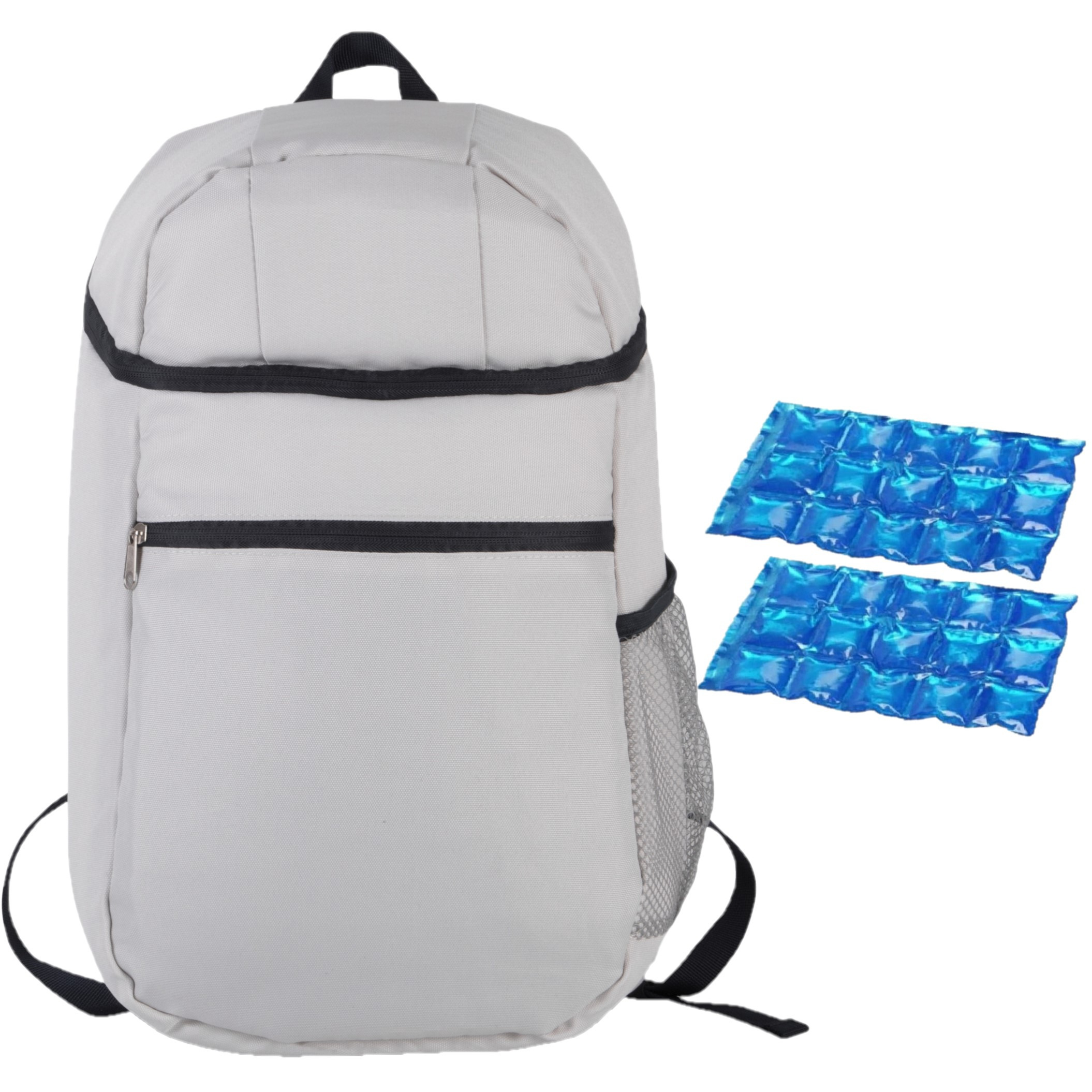 Koeltas rugtas/rugzak grijs met 2 stuks flexibele koelelementen. De flexibele koelelementen zijn herbruikbaar. Afmeting koeltas: ca. 25 x 18 x 47 cm. Inhoud koeltas: ca 16 liter. Materiaal koeltas: polyester. , Dit artikel bestaat uit:, 2x 1x Stuks herbruikbare flexibele koelelementen icepack 15 x 25 cm, 1x Koeltas rugtas/rugzak grijs 25 x 18 x 47 cm 16 liter