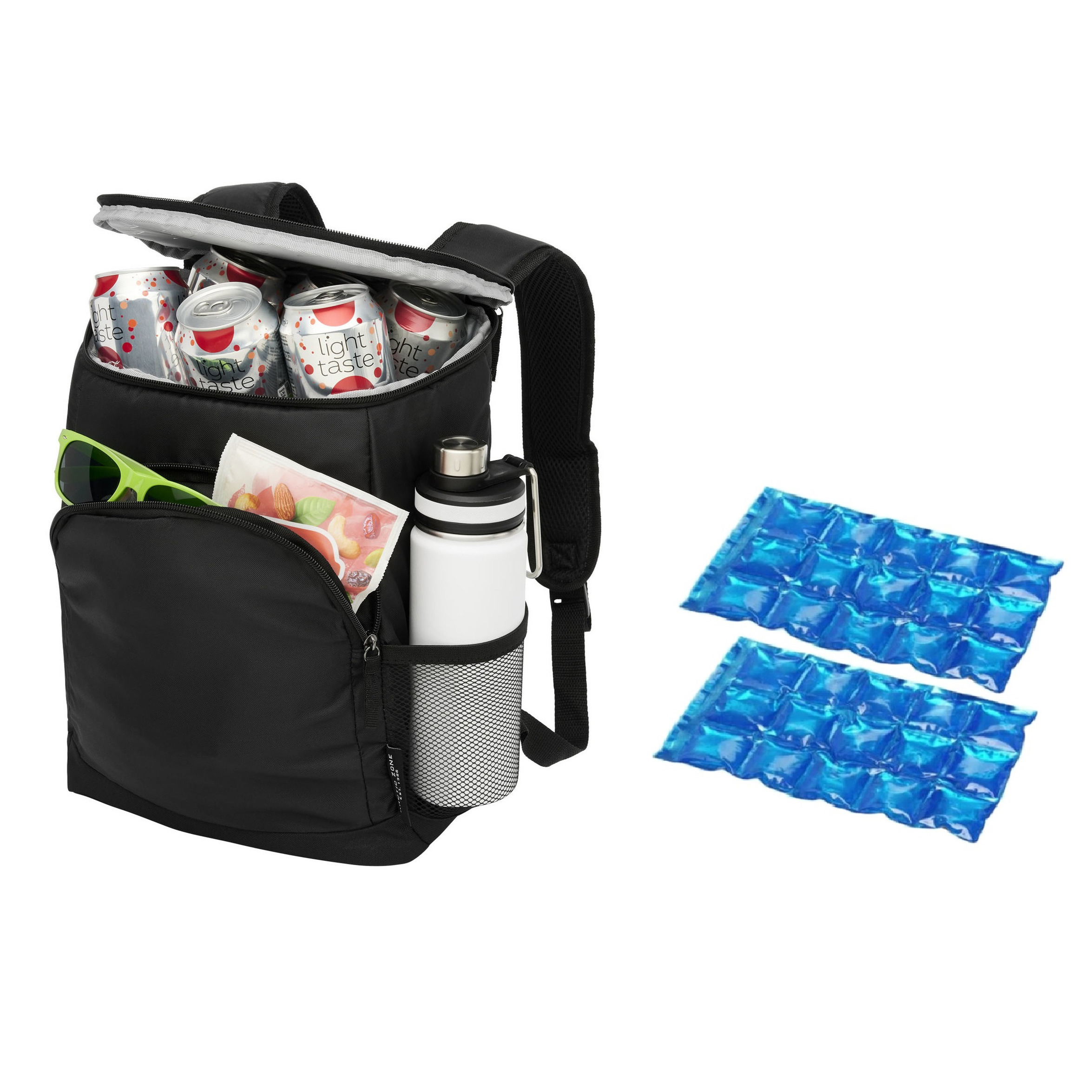 Koeltas rugtas/rugzak zwart met 2 stuks flexibele koelelementen. De flexibele koelelementen zijn herbruikbaar. Afmeting koeltas: ca. 30 x 17 x 34 cm. Inhoud koeltas: ca. 17 liter. Materiaal koeltas: polyester. , Dit artikel bestaat uit:, 2x 1x Stuks herbruikbare flexibele koelelementen icepack 15 x 25 cm, 1x Koeltas rugtas/rugzak zwart 30 x 17 x 34 cm 17 liter