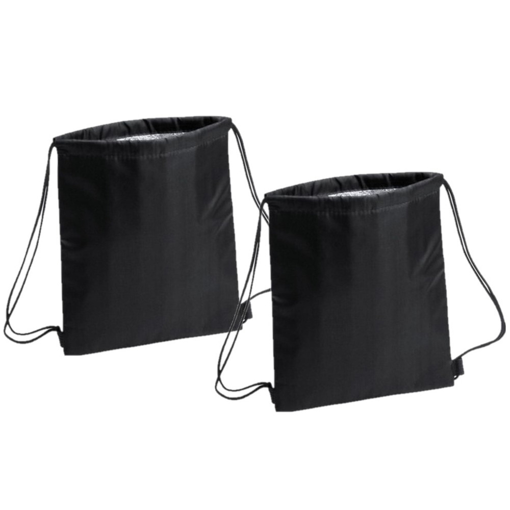 2 stuks draagbare koeltas rugzak, in het zwart, van 27 x 33 cm. Koeltas in de vorm van een gymtas rugtas. De tas heeft een isolerende (isothermische) laag aan de binnenzijde, versterkte hoeken en is voorzien van zelfsluitende drawstring rijgkoorden. Voldoende ruimte voor het opbergen van uw lunch en flesjes/blikjes drinken. Formaat: 27 x 33 cm. Materiaal: zacht polyester, aluminium. Koeltassen rugtassen/rugzakken gymtasjes. Ideaal voor onderweg/op reis, in het park, op het strand of tijdens een schoolreisje.