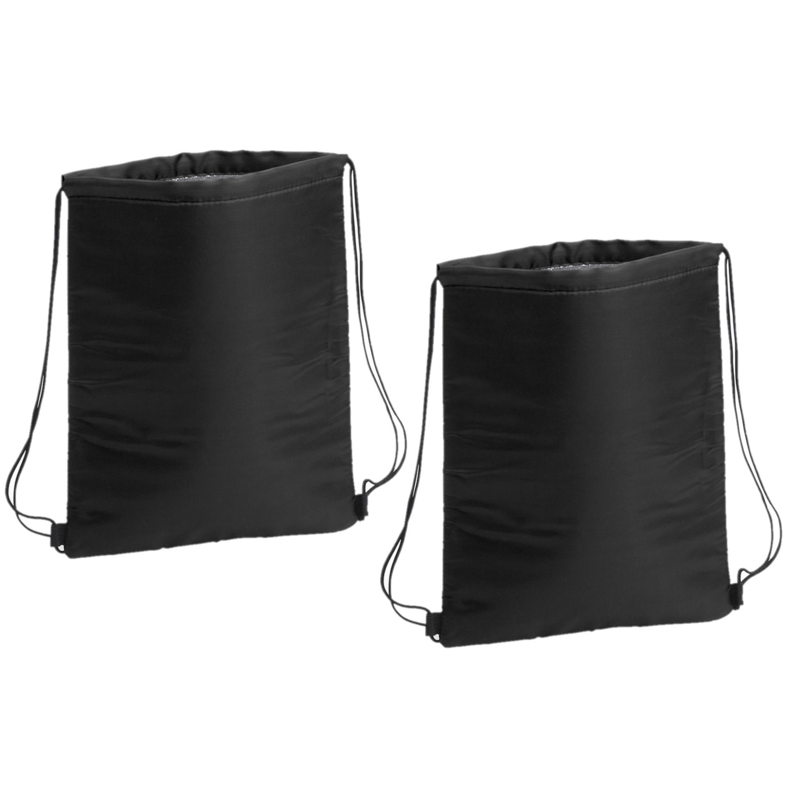 2 stuks koeltas rugzak met draagkoord in de kleur zwart. Koeltas in de vorm van een rugtas. De tas heeft een isolerende (isothermische) laag aan de binnenzijde, versterkte hoeken en is voorzien van zelfsluitende drawstring rijgkoorden. Voldoende ruimte voor het opbergen van uw lunch en flesjes/blikjes drinken. Formaat: 32 x 42 cm. Materiaal: zacht polyester, aluminium. Koeltassen rugtassen/rugzakken gymtasjes. Ideaal voor onderweg/op reis, in het park, op het strand of tijdens een schoolreisje.