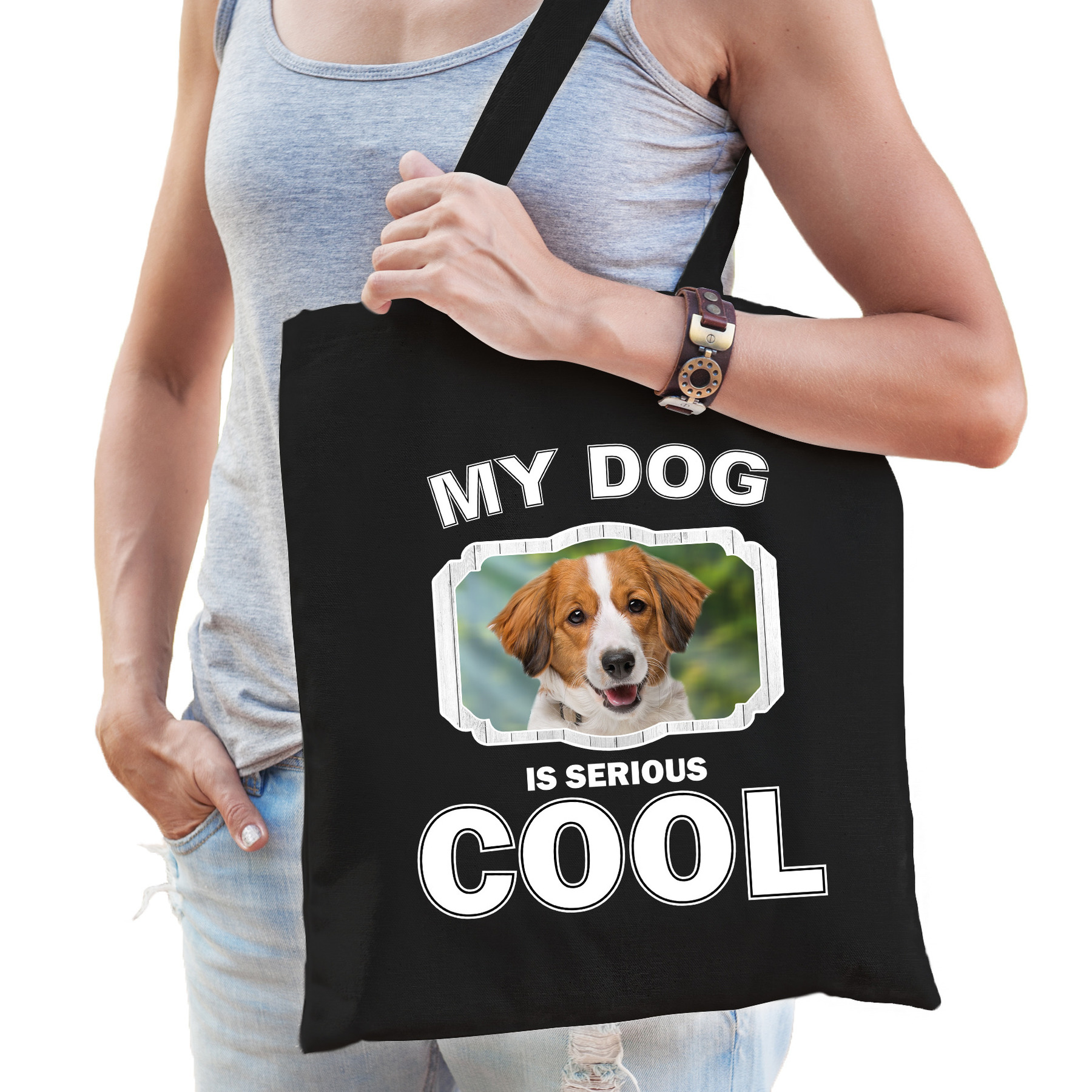 Kooiker honden tasje zwart volwassenen en kinderen. Op deze tas staat een Kooiker afbeelding en de tekst: my dog is serious cool. Een musthave voor een echte dieren/ Kooikerhondjes liefhebber of iemand die alles van honden spaart. Erg leuk om cadeau te doen aan een echte Kooikerhondjes fan of gewoon om zelf te gebruiken!