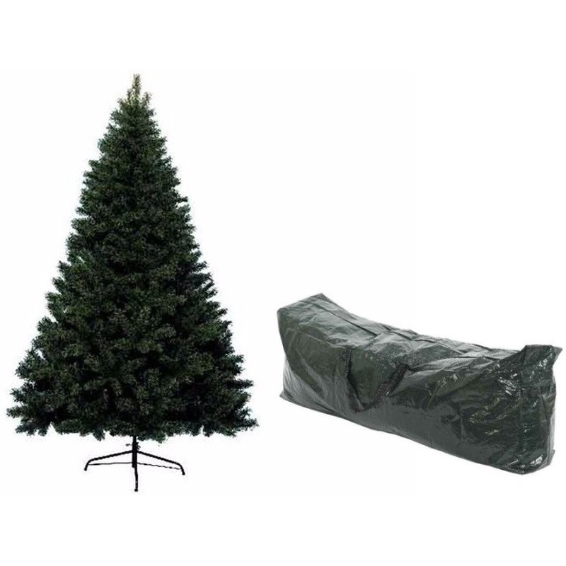 Kunst kerstboom Canada Spruce 180 cm met een groene kerstboom opbergzak. Kunst kerstboom met 818 plooitakken met harde en zachte naalden, een diameter van ca. 117 cm en een metalen voet. Het opzetten van de kerstboom is eenvoudig door het paraplusteem, waarbij je alleen de takjes nog in model hoeft te brengen. Met tas om de boom in op te bergen.