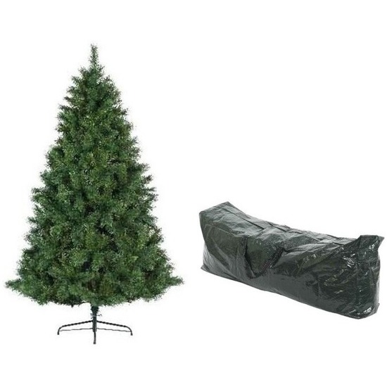 Kunst kerstboom Ontario Pine 500 tips 180 cm en een groene kerstboom opbergzak. Volle groene kunstboom Ontario Pine van 180 cm hoog en ongeveer 102 cm diameter. De kerstboom is van 100% PVC en heeft een metalen voet van ongeveer 46 cm. Met tas om de boom in op te bergen. Afmeting zak: 120 x 25 x 43 cm, materiaal: geweven plastic. Kunstbomen/kerstbomen. , Dit artikel bestaat uit:, 1x Kerstboom opbergzak – groen – voor kerstbomen tot 210 cm – 120 x 25 x 43 cm, 1x Everlands Kunst Kerstboom – 500 tips – groen – 180 cm