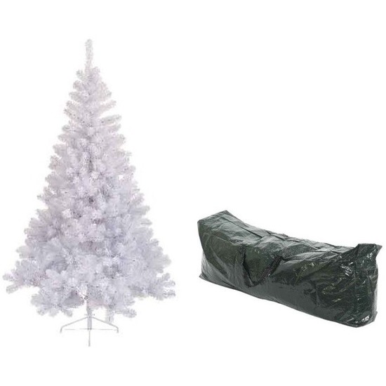 Kunst kerstboom wit Imperial pine 525 tips 180 cm en een groene kerstboom opbergzak. Witte kunstboom van 180 cm hoog met een diameter van ongeveer 117 cm. De kunstboom is gemaakt van 100% PVC en heeft een metalen voet van ongeveer 50 cm diameter. Met tas om de boom in op te bergen. Afmeting zak: 120 x 25 x 43 cm, materiaal: geweven plastic. Witte kerstbomen/kunstbomen. , Dit artikel bestaat uit:, 1x Kerstboom opbergzak – groen – voor kerstbomen tot 210 cm – 120 x 25 x 43 cm, 1x Kunst kerstboom wit Imperial pine 525 tips 180 cm