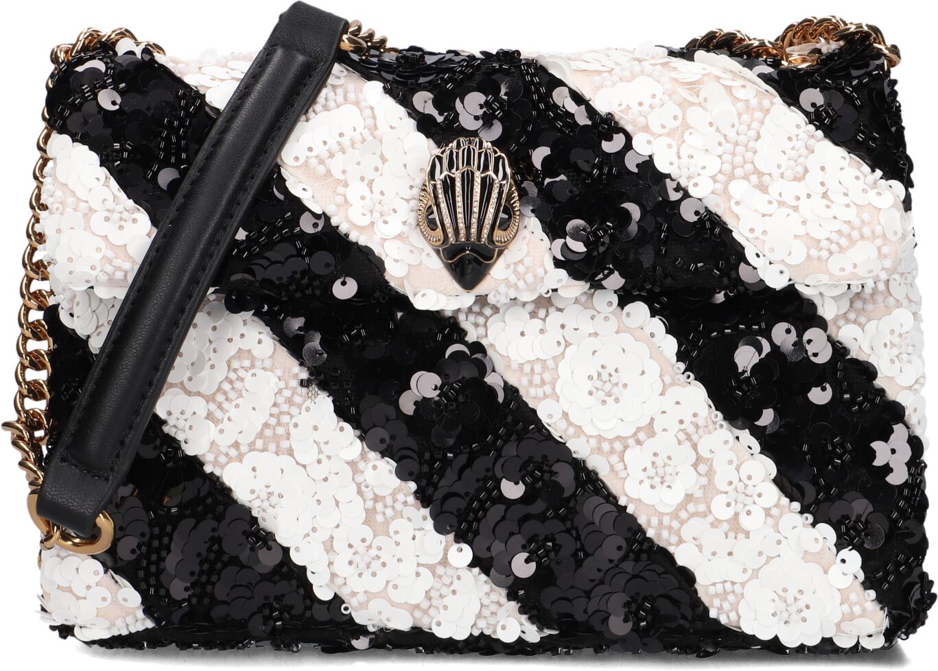 Voeg een vleugje glamour toe aan je herfst- en wintergarderobe met de SEQUINS MD KENSINGTON schoudertas van Kurt Geiger London. Deze zwarte tas, met een binnenkant van zacht textiel, is perfect voor een avondje uit of een stijlvolle lunch met vriendinnen. Combineer hem met een warme wollen jas en je favoriete enkellaarsjes voor een chique look. De glinsterende pailletten maken elke outfit net dat beetje specialer. Of je nu door de stad wandelt of een gezellige middag in een café doorbrengt, deze tas is de ideale metgezel voor de modebewuste dame.