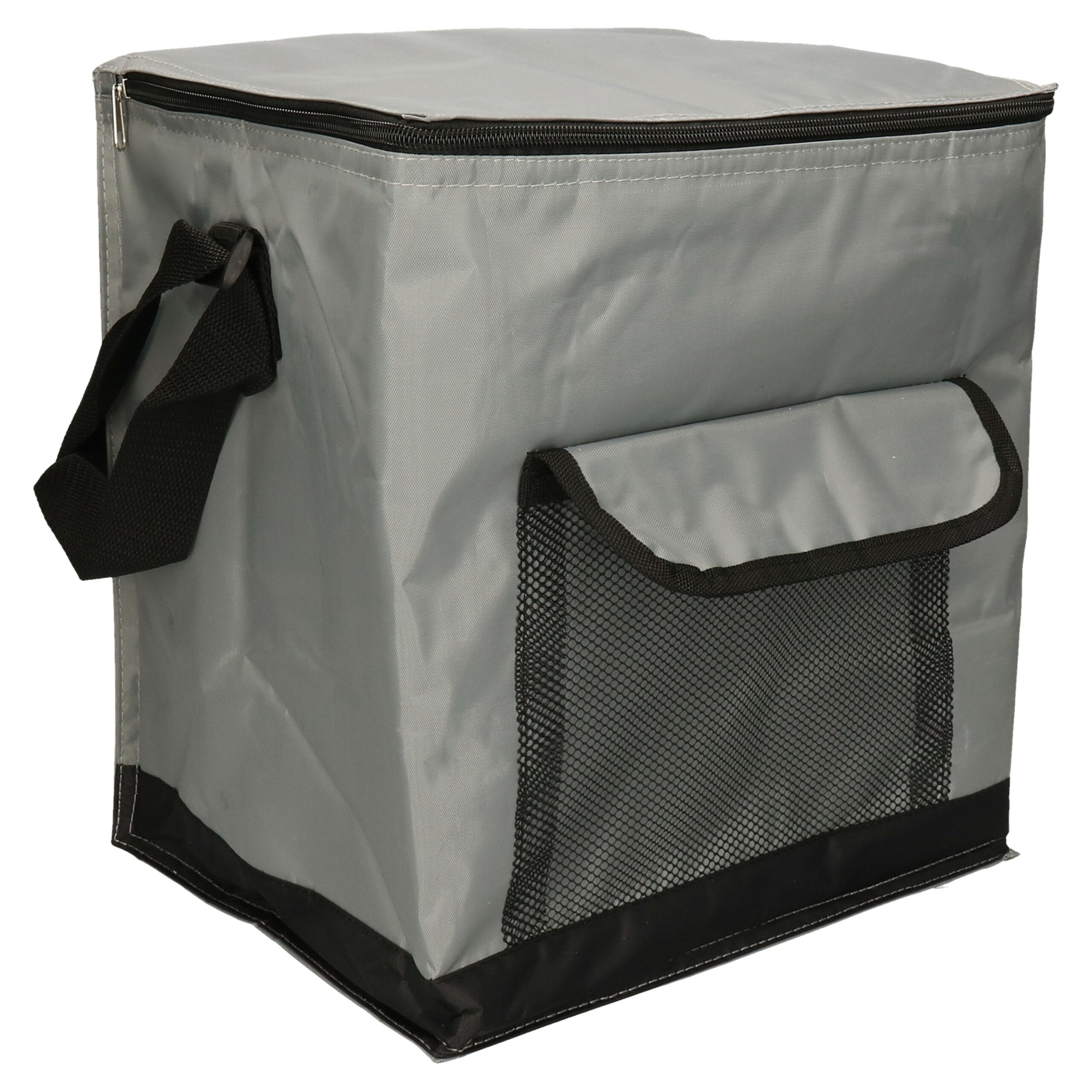 Medium Size koeltas of lunch tas model Salou met afmetingen 31 x 23 x 33 cm. Deze handige koeltas heeft 2 compartimenten, 1 hoofd koelvak met ritssluiting en een zijvakje. Kleur: grijs. Robuuste uitstraling. Materiaal: polyester. Met stevige schouderriem. Voedselveilig en makkelijk schoon te maken. Inhoud: 22 liter. Mooie kwaliteit.