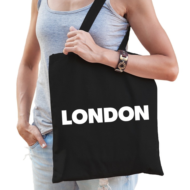 Milaan schoudertas zwart katoen met Milan bedrukking