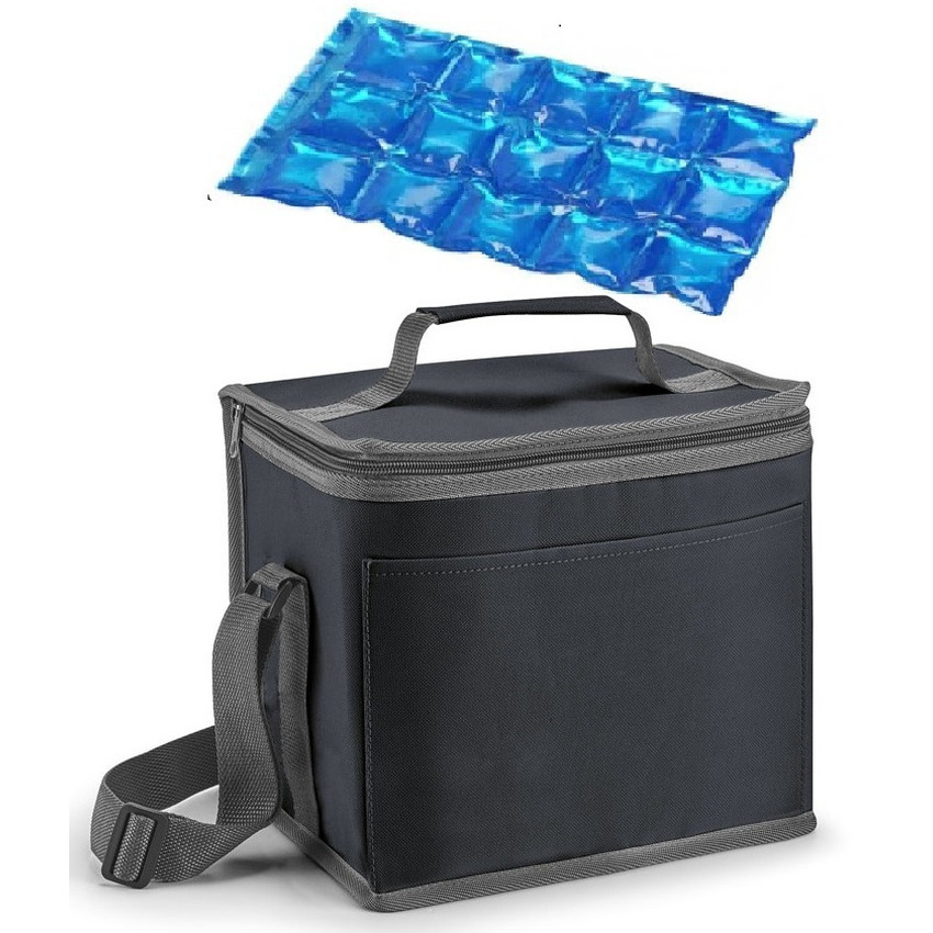 Lunch/blikjes koeltas – klein model – zwart – 24 x 22 x 17 cm – met flexibel koelelement