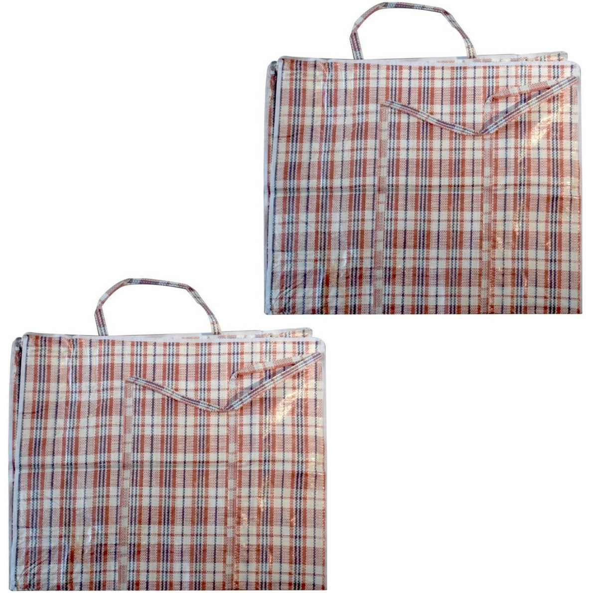 2 stuks mega/jumbo grote boodschappentas, dekens en kussens tas in een rood, geruit patroon, 65 x 30 cm. Een extra grote boodschappentas, afsluitbaar met een rits. Afmeting: ca. 65 x 30 x 55 cm. Inhoud: ca. 82 liter. Materiaal: geweven kunststof. Gewicht: 152 gram.