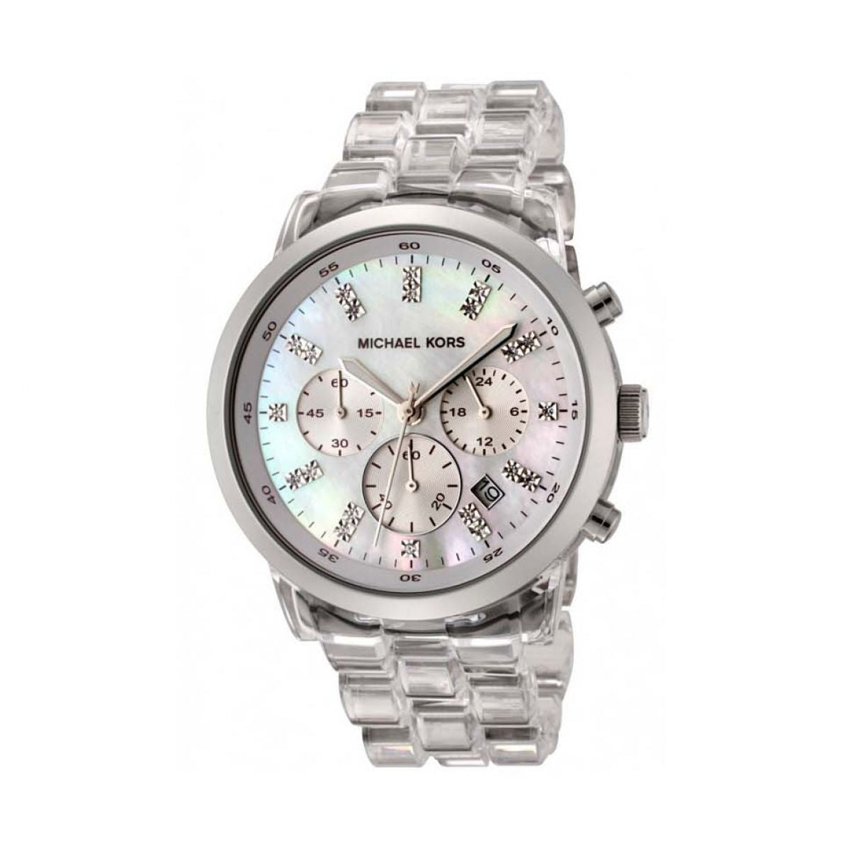 Michael Kors Crystal Chronograph Polycarbonate Staal 44mm | MK5235 | Edelstalen herenhorloge met 44 mm kast. Quartz uurwerk met datumaanduiding en chronograaf, 5 ATM waterbestendig. De band is gemaakt van ultrasterk en ultralicht polycarbonate.