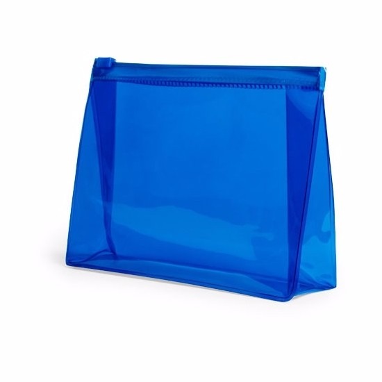 Mini toilettas in het transparant blauw van 17 cm. Deze kleine toilettas, van transparant blauw plastic, is voorzien van een sluitstrip. Ideaal om mini toiletartikelen in te bewaren als handbagage in het vliegtuig.