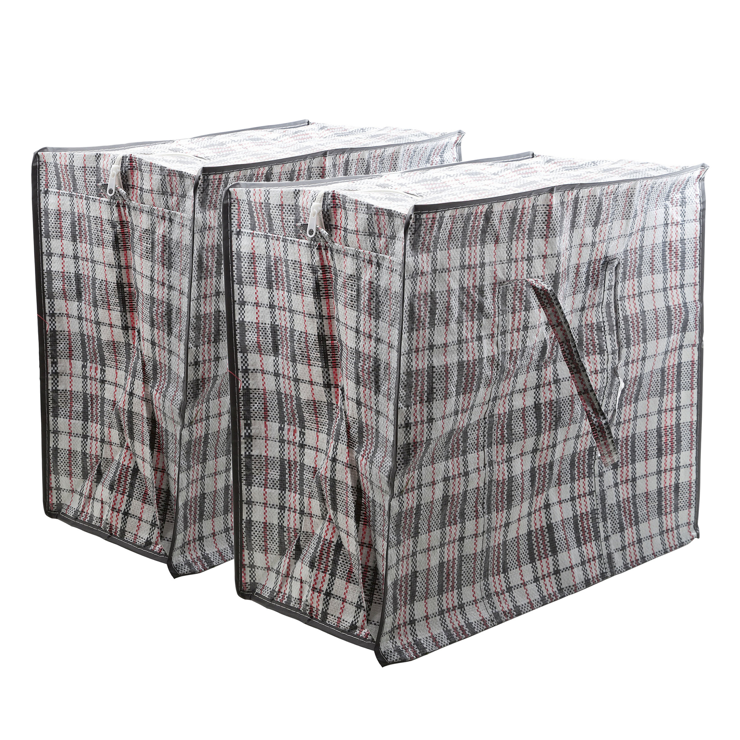 Multipak van 2x stuks mega/jumbo boodschappentas/shopper zwart geruit 55 x 30 cm. Een extra grote boodschappentas, afsluitbaar met een rits. Afmeting: ca. 55 x 30 x 50 cm. Inhoud: ca. 82 liter. Materiaal: geweven kunststof. Gewicht: 152 gram.