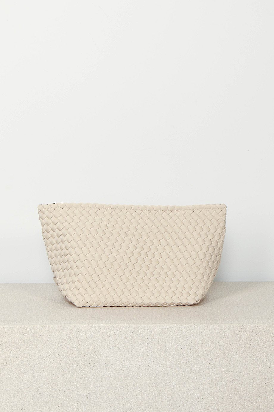 Cosmetic case van Naghedi in de kleur Crème Stofsamenstelling: 100% handgeweven neopreen Ritssluiting Logo op de zijkant Afmetingen: lengte: 34,29 cm, hoogte: 19,05 cm, diepte: 13,46 cm Over Naghedi Naghedi ontwerpt tassen, welke makkelijk in gebruik zijn en stijlvol! Perfect om mee te nemen en alles in te doen. Onderweg naar de gym, een dagje shoppen of op vakantie? Look no further!