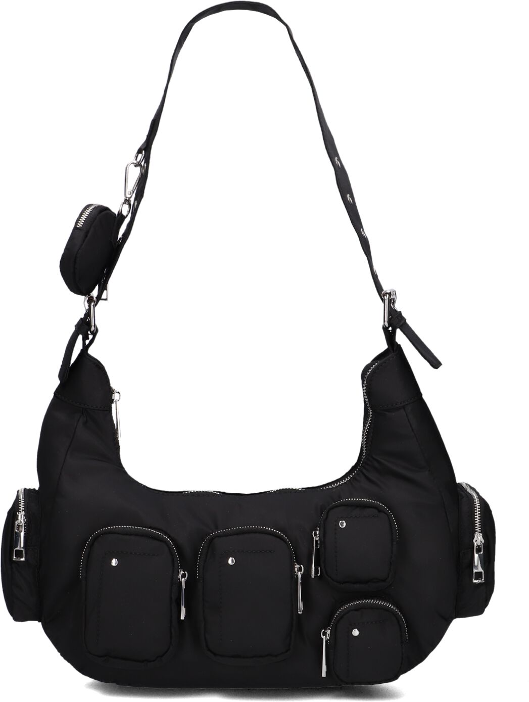 Met de SALLY POCKET RECYCLED NYLON schoudertas van NÚNOO ben jij helemaal on-trend! Deze zwarte tas is gemaakt van gerecycled nylon en heeft een stijlvolle uitstraling. Perfect voor dames die op zoek zijn naar een praktische en fashionable accessoire. Draag de tas over je schouder en ga op pad met al je essentials binnen handbereik. Of je nu een dagje gaat shoppen of een avondje uit gaat, deze tas is geschikt voor elke gelegenheid. Combineer de SALLY POCKET RECYCLED NYLON met een stoere jeans en een trendy blouse voor een complete look. De afmetingen zijn: 33 x 9 x 27 centimeter (lengte x breedte x hoogte)