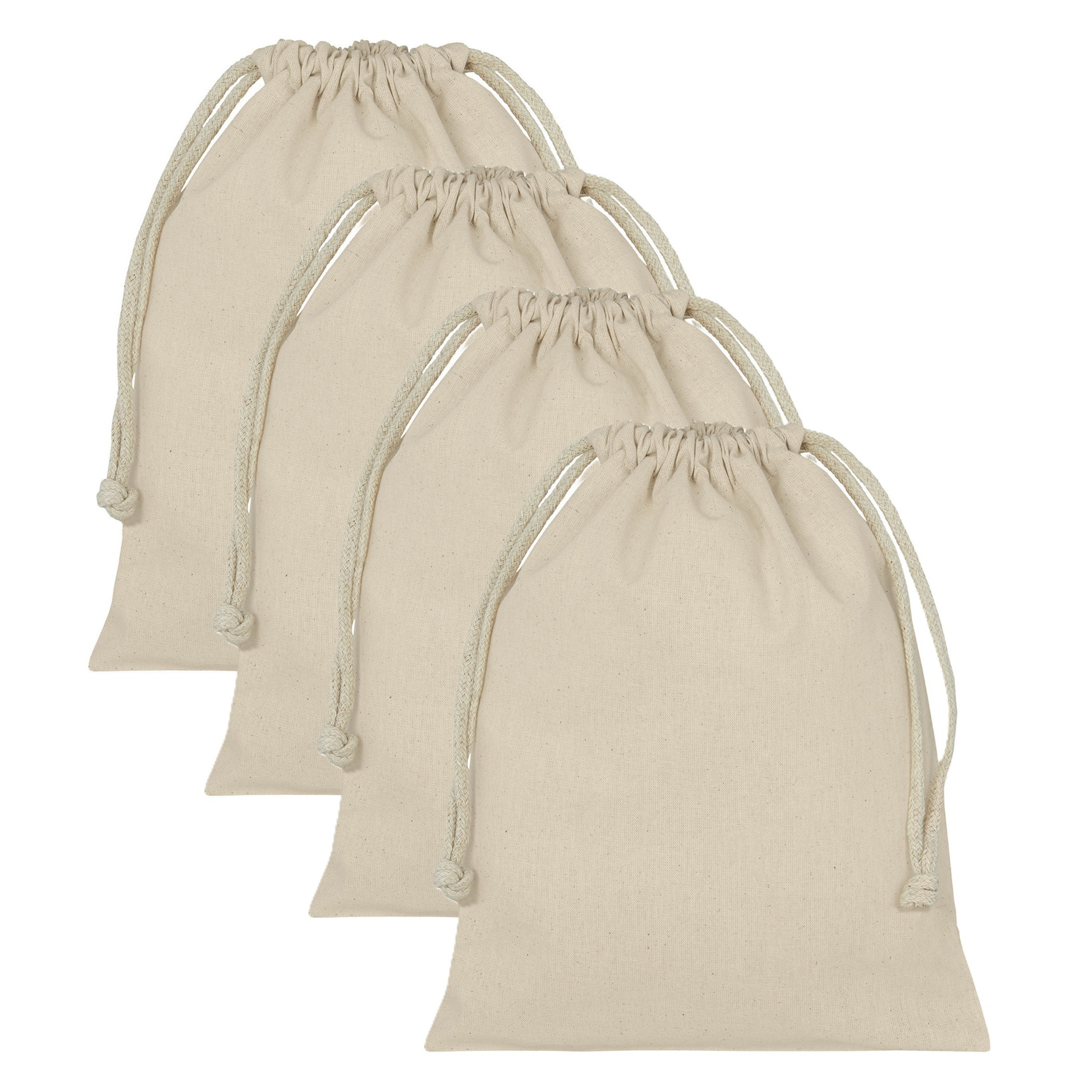 4x opbergzakje met koord, in de kleur wit. Dit canvas zakje is gemaakt van gecertificeerd biologisch katoen en heeft een formaat van 25 x 30 cm. De zijnaden van het tasje zijn gevouwen en gestikt om krimpen te voorkomen. Het linnen zakje is tevens geschikt om te borduren en te bedrukken. Een leuk DIY/hobby projectje. Ook leuk om het katoenen zakje te gebruiken als cadeau tasje voor bijvoorbeeld een bruiloft, verjaardag of gewoon zomaar. Formaat: 25 x 30 cm. Bedrukbare formaat: 20 x 20 cm. Materiaal: 100% katoen, 140 grams kwaliteit.