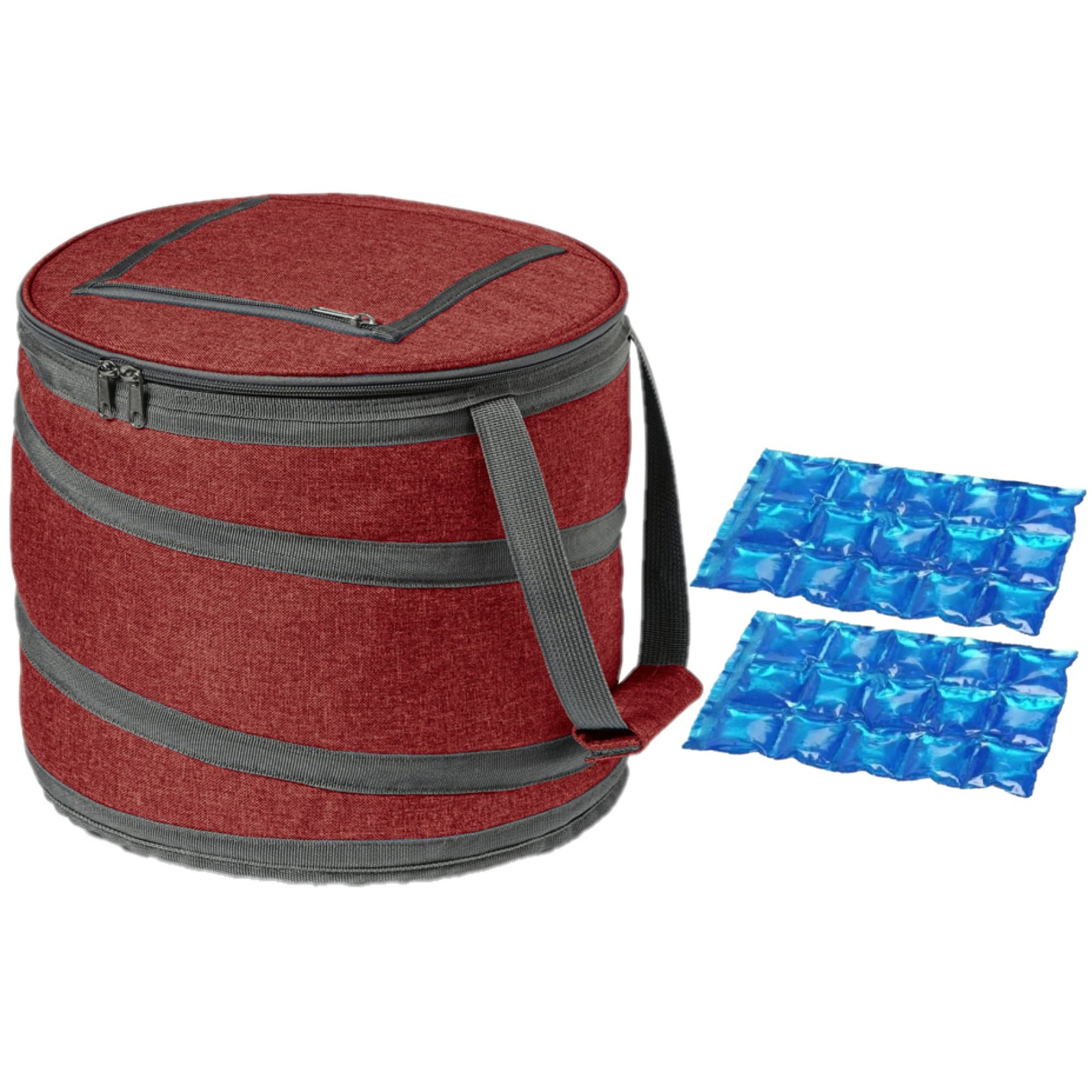 Opvouwbare koeltas rood/grijs met 2 stuks flexibele koelelementen. De flexibele koelelementen zijn herbruikbaar. Afmeting koeltas: ca. 30 x 26 cm. Inhoud koeltas: ca. 15 liter. Materiaal koeltas: polyester. , Dit artikel bestaat uit:, 2x 1x Stuks herbruikbare flexibele koelelementen icepack 15 x 25 cm, 1x Koeltas – rood – opvouwbaar – 30 x 26 cm – 15 liter – met rits en flesopener – polyester