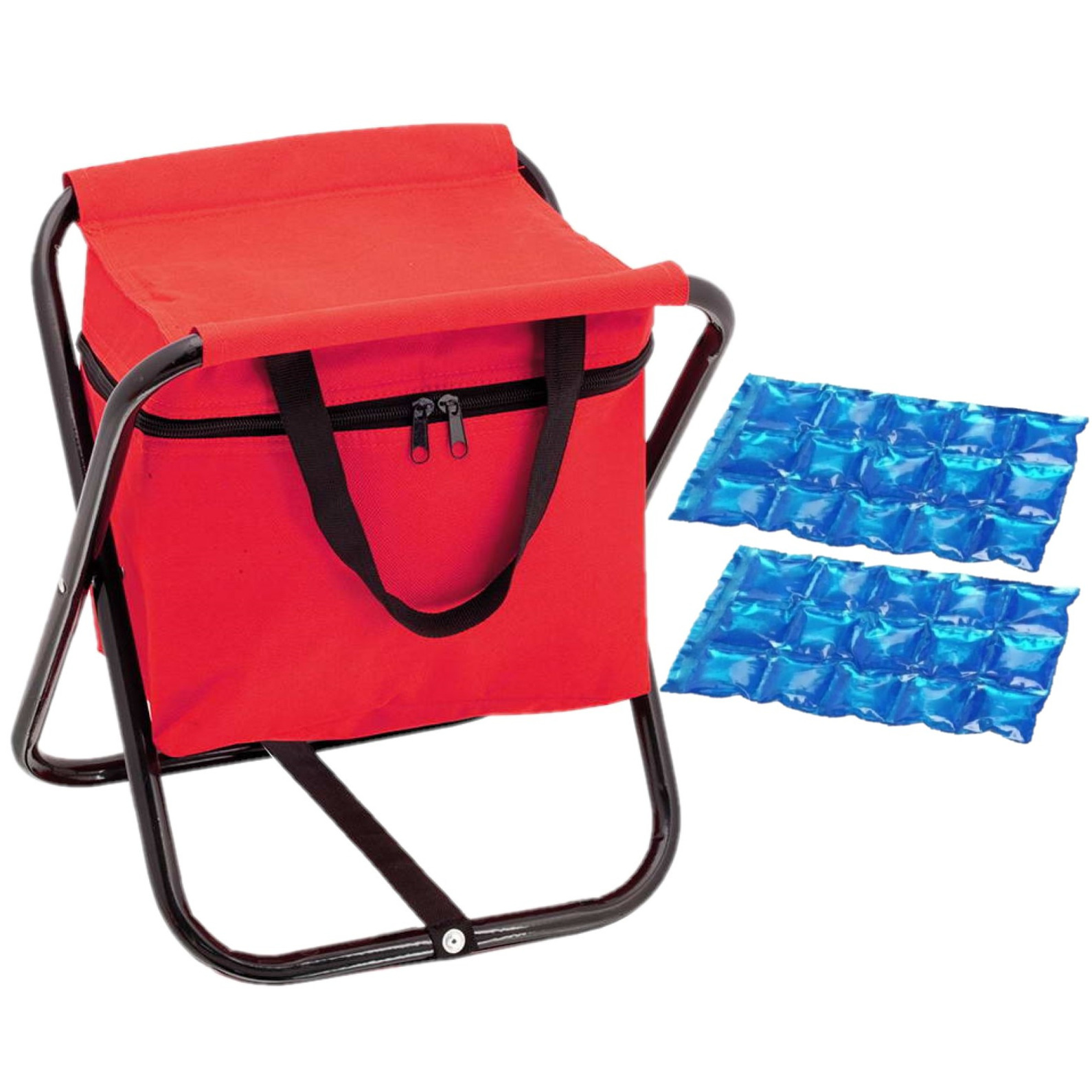 Opvouwbare stoel met koeltas rood met 2 stuks flexibele koelelementen. De flexibele koelelementen zijn herbruikbaar. Afmeting stoel met koeltas: ca. 26 x 34 x 32 cm. Materiaal koeltas: polyester, aluminium. , Dit artikel bestaat uit:, 2x 1x Stuks herbruikbare flexibele koelelementen icepack 15 x 25 cm, 1x Opvouwbare stoel met koeltas rood 26 x 34 x 32 cm