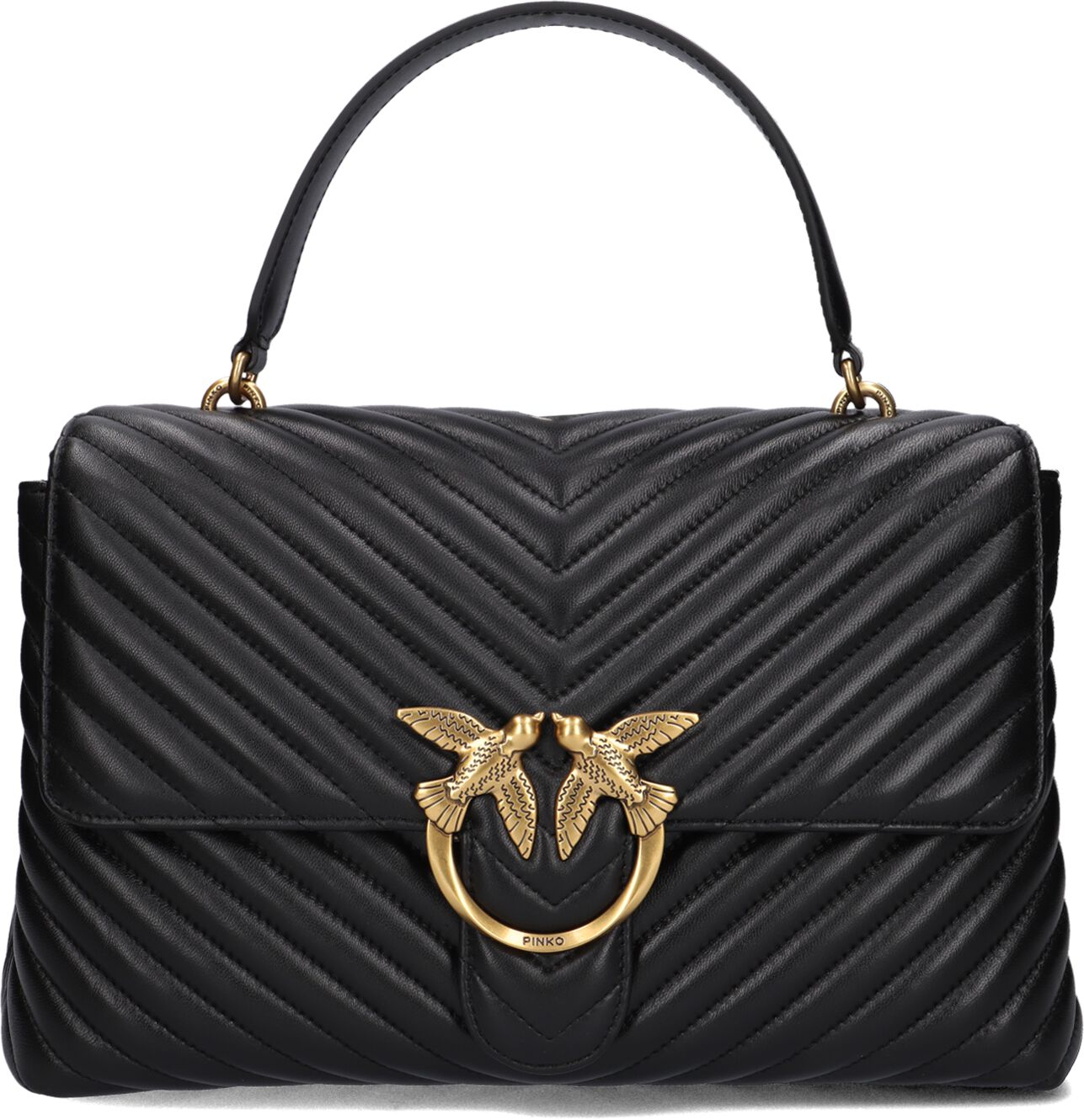 Deze prachtige handtas LOVE LADY PUFF SLASSIC CL met gewatteerd uiterlijk komt uit de collectie van het bekende merk PINKO. Dit model is gemaakt van hoogwaardig, zwart leer en heeft een goudkleurig logo aan de voorzijde. Onder de klep zit een drukknoopsluiting en de tas heeft twee hoofdcompartimenten met aan één zijde een steekvakje. Ook is het middelste vak voorzien van een ritssluiting, waarin je je sleutels goed kunt opbergen. Draag 'm gemakkelijk met je mee aan het leren handvat en maak je outfit helemaal af met deze beauty! De afmetingen zijn: 31 x 12 x 21 centimeter (lengte x breedte x hoogte).