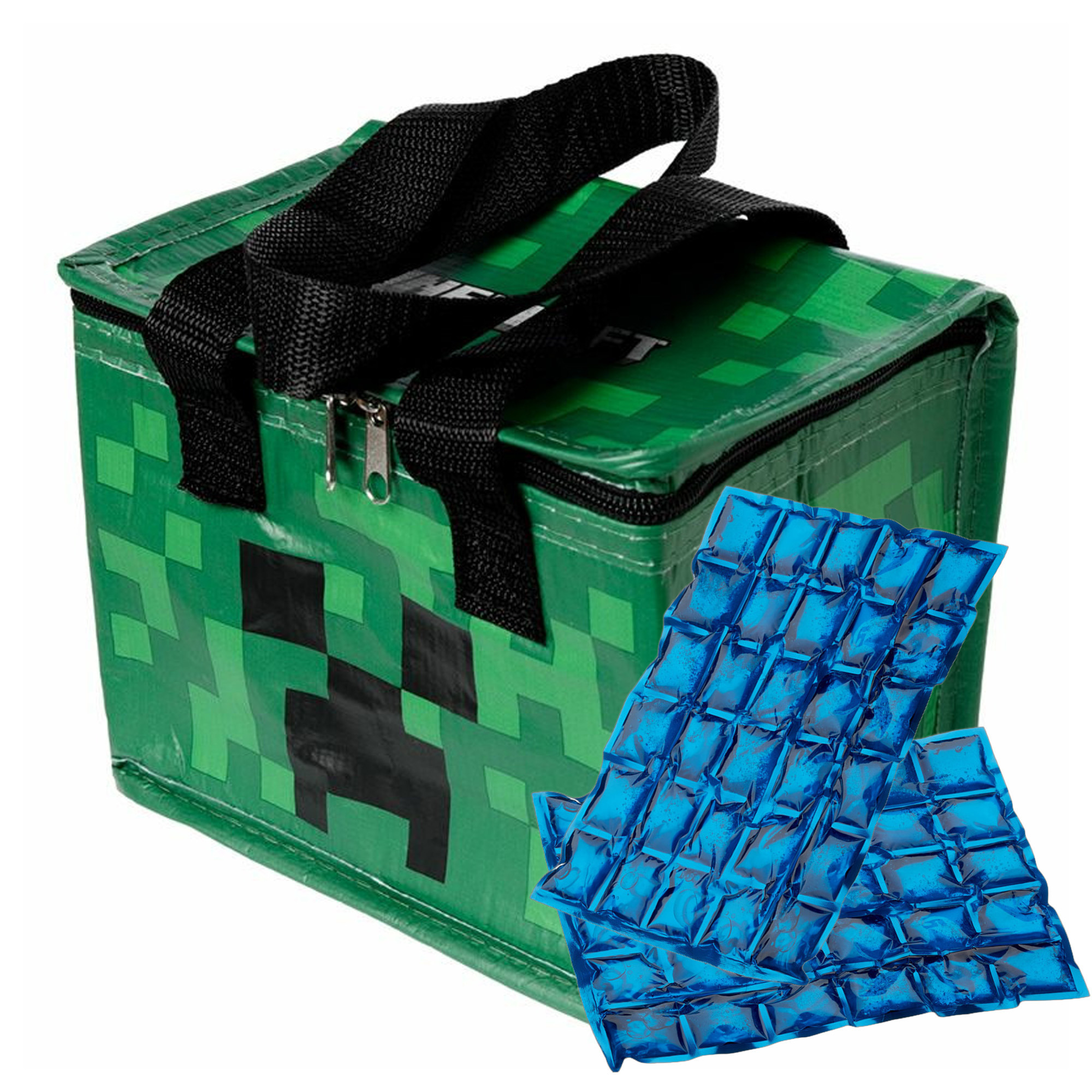 Handige lunch koeltas met 2x flexibel koelelement, Minecraft thema print om uw lunch of six-pack blikjes koel te houden. Afmetingen: 15 x 21 x 14 cm. Inhoud ca. 4,4 liter. Materiaal: polypropyleen. , Dit artikel bestaat uit:, 2x Flexibele koelelementen – 24 x 29 cm – 1x stuks – Flexibel koelkussen voor koelbox of koeltas, 1x Kleine lunch koeltas – Minecraft print – 21 x 15 x 14 cm – 4,4 liter