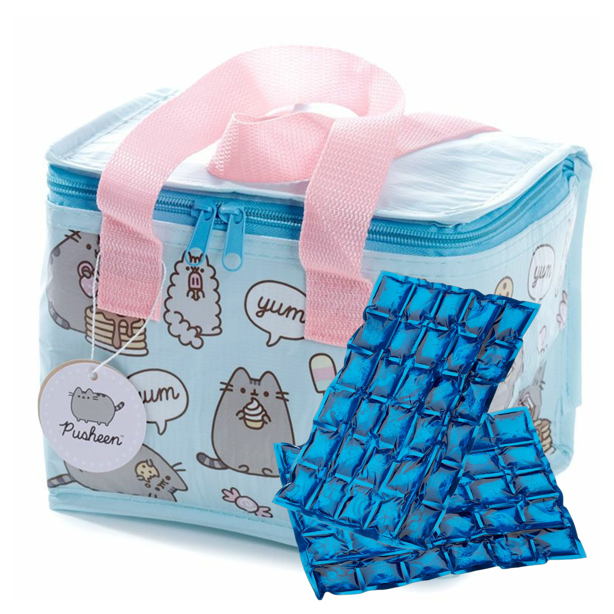 Handige lunch koeltas met 2x flexibel koelelement, Pusheen de kat thema print om uw lunch of six-pack blikjes koel te houden. Afmetingen: 15 x 21 x 15 cm. Inhoud ca. 4,4 liter. Materiaal: polypropyleen. , Dit artikel bestaat uit:, 2x Flexibele koelelementen – 24 x 29 cm – 1x stuks – Flexibel koelkussen voor koelbox of koeltas, 1x Kleine lunch koeltas Pusheen de kat print 21 x 15 x 15 – 4,4 liter