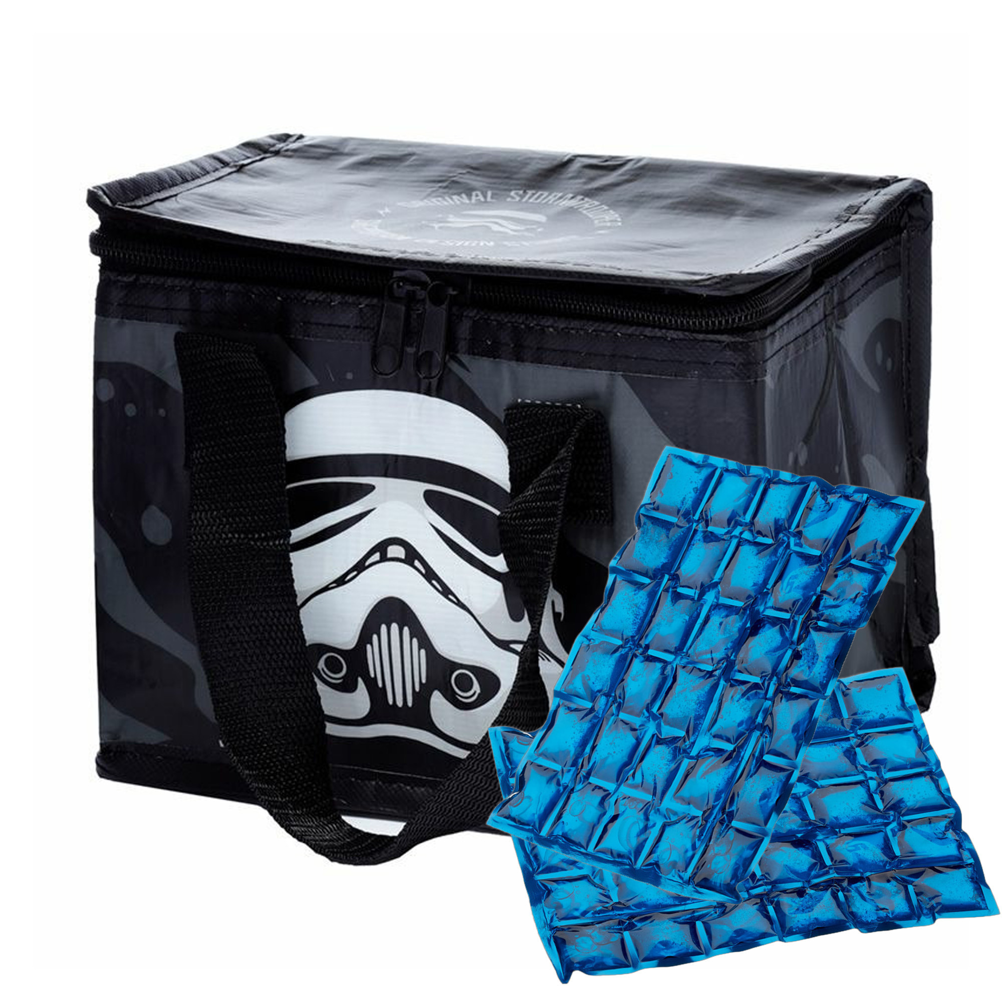 Handige lunch koeltas met 2x flexibel koelelement, Stormtrooper thema print om uw lunch of six-pack blikjes koel te houden. Afmetingen: 16 x 21 x 14 cm. Inhoud ca. 4,4 liter. Materiaal: polypropyleen. , Dit artikel bestaat uit:, 2x Flexibele koelelementen – 24 x 29 cm – 1x stuks – Flexibel koelkussen voor koelbox of koeltas, 1x Kleine lunch koeltas – Stormtrooper print – 21 x 16 x 14 cm – 4,7 liter