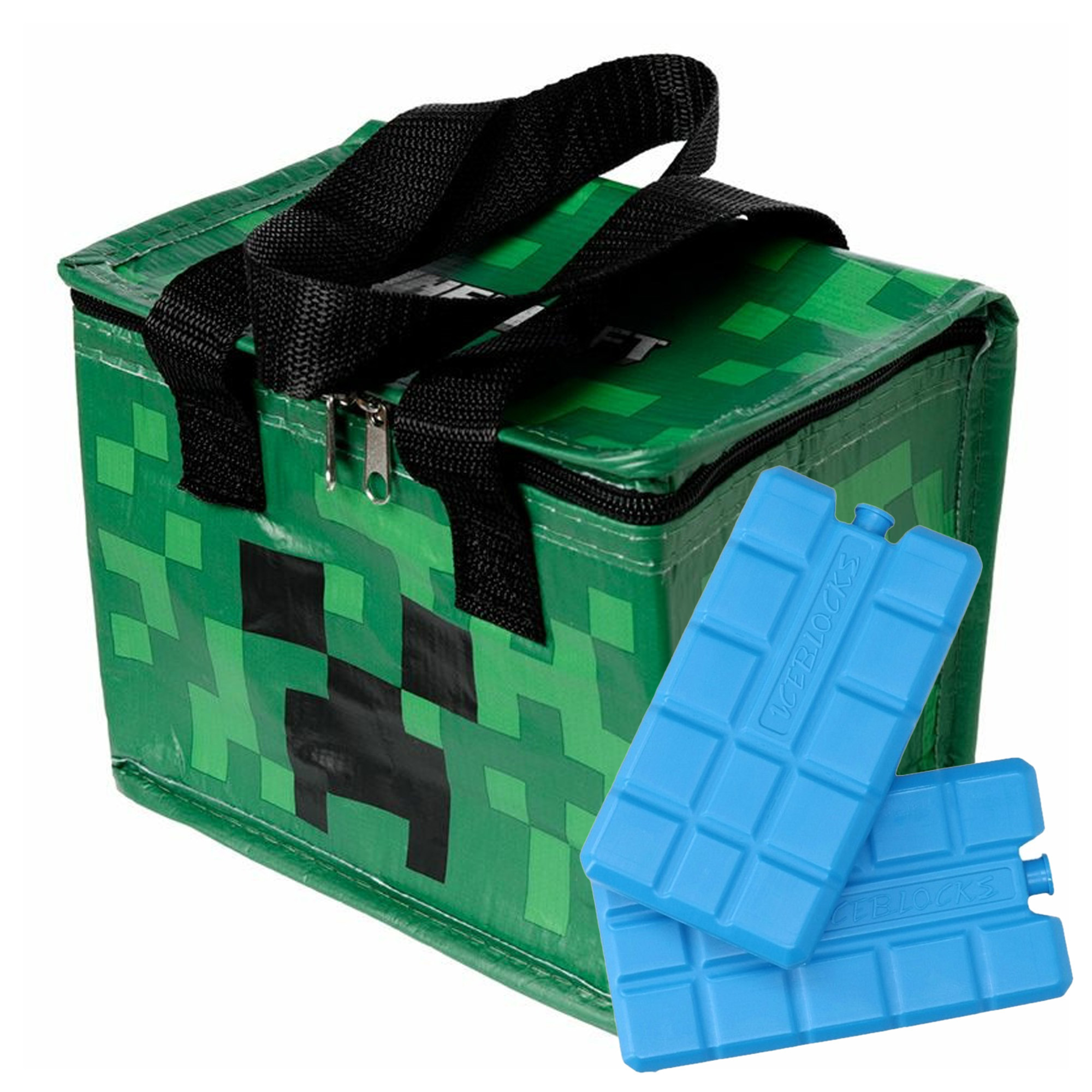 Handige lunch koeltas met 2x koelelement, Minecraft thema print om uw lunch of six-pack blikjes koel te houden. Afmetingen: 15 x 21 x 14 cm. Inhoud ca. 4,4 liter. Materiaal: polypropyleen. , Dit artikel bestaat uit:, 1x Koelelementen voor koeltas/koelbox – 2x stuks – 200 ml – blauw – kunststof – 15 x 8 x 2 cm, 1x Kleine lunch koeltas – Minecraft print – 21 x 15 x 14 cm – 4,4 liter