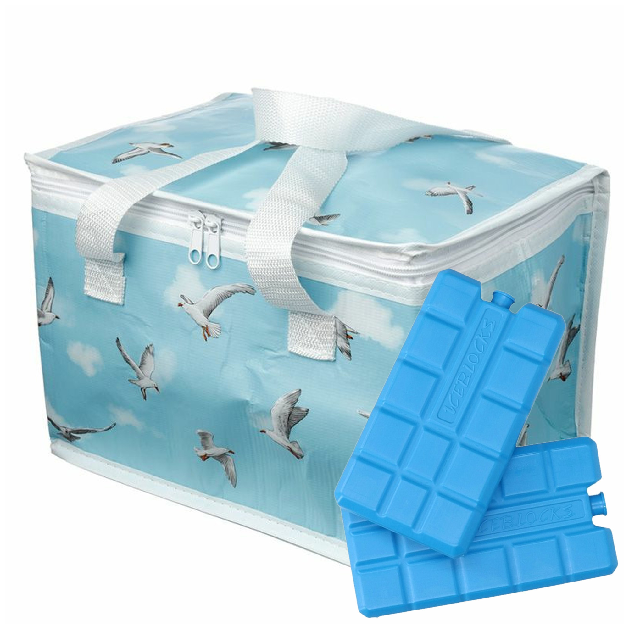 Handige lunch koeltas met 2x koelelement, Zeemeeuw thema print om uw lunch of six-pack blikjes koel te houden. Afmetingen: 20 x 29 x 20 cm. Inhoud ca. 12 liter. Materiaal: polypropyleen. , Dit artikel bestaat uit:, 1x Koelelementen voor koeltas/koelbox – 2x stuks – 200 ml – blauw – kunststof – 15 x 8 x 2 cm, 1x Kleine lunch koeltas Zeemeeuw print 20 x 29 x 20 – 11.6 liter