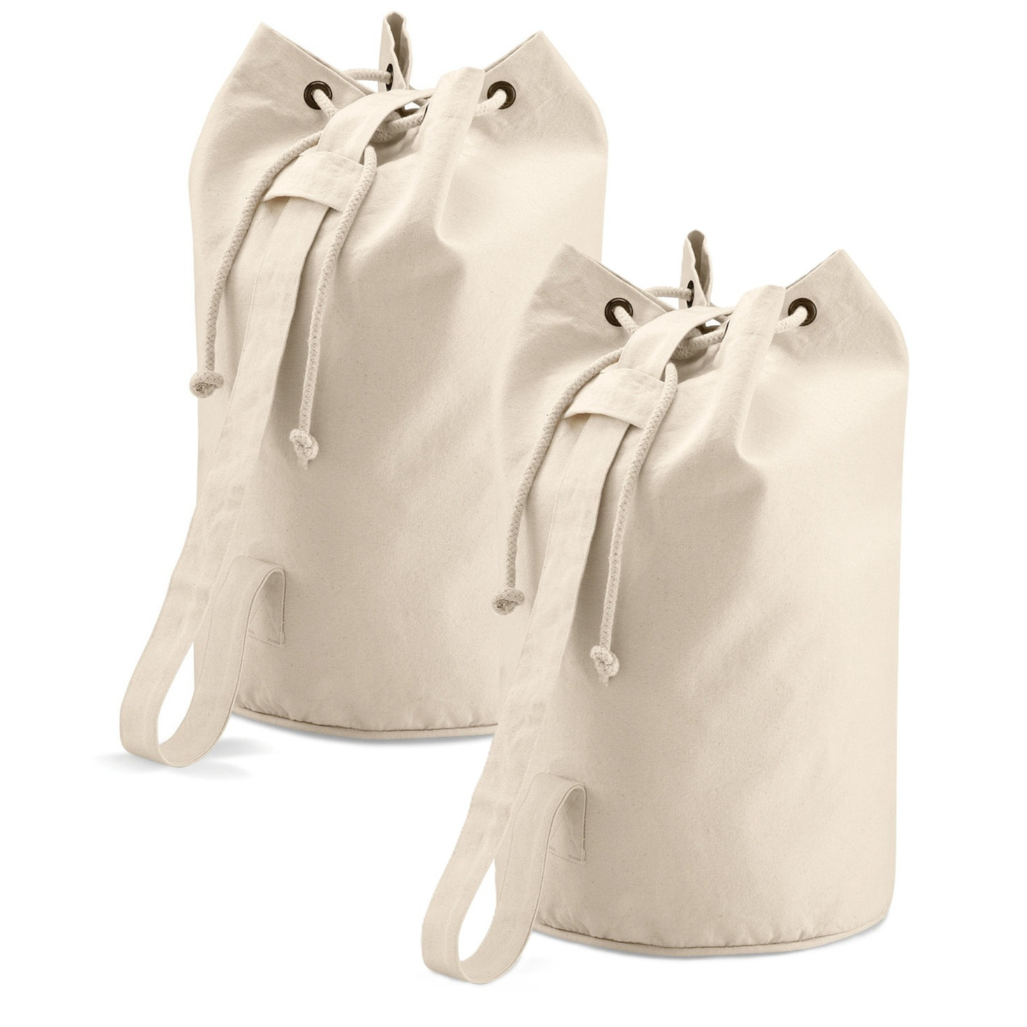 2x canvas duffel tas van 100% katoen. Ga voor een stijlvolle en praktische tas met deze beige canvas duffel bag! Gemaakt van 100% katoen, biedt deze plunjezak een ruime capaciteit van 30 liter, ideaal voor sport, reizen of dagelijks gebruik. De tas sluit eenvoudig met een trekkoord, waardoor je spullen snel en veilig opgeborgen zijn.